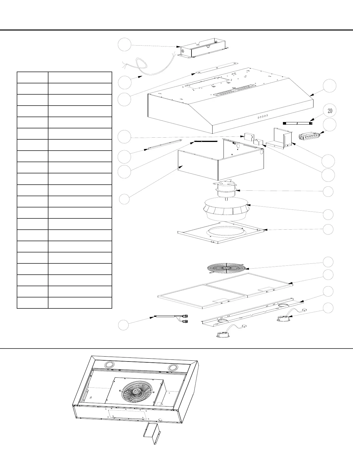 Ancona Slim S3D - Range Hood Assembly Components