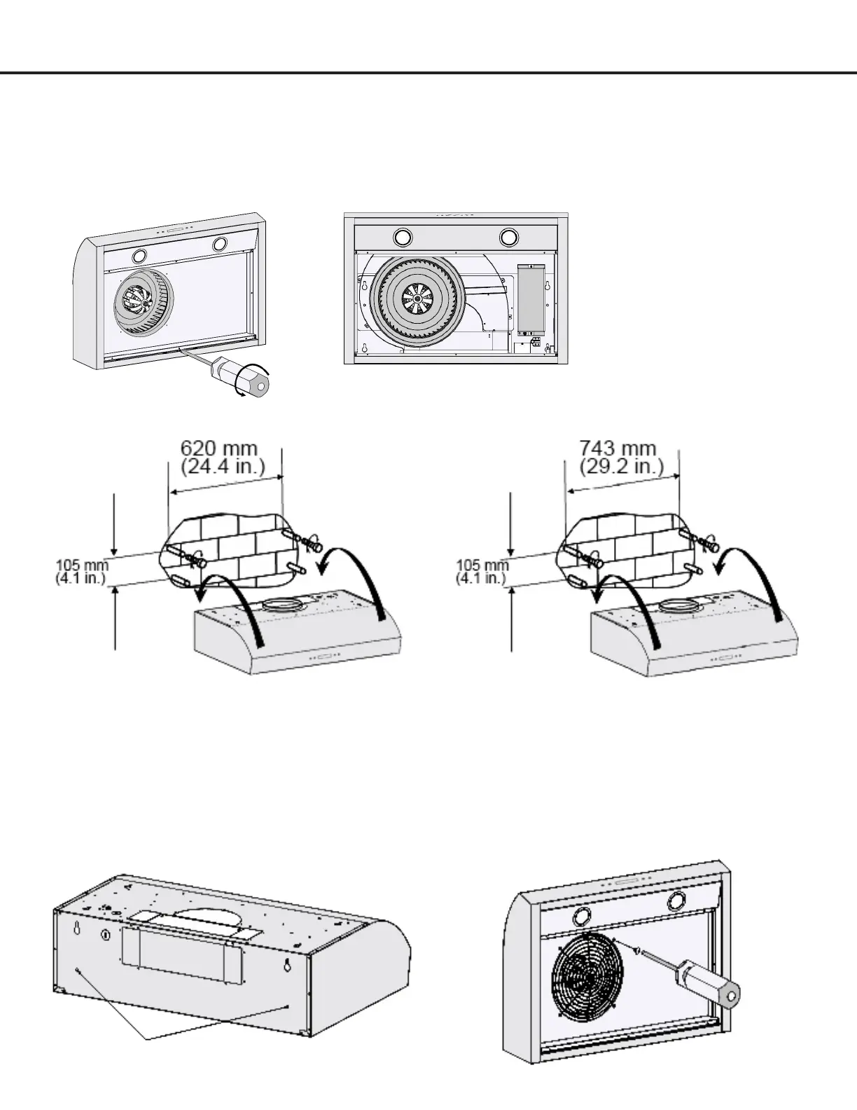 • Hang the range hood onto the screws.