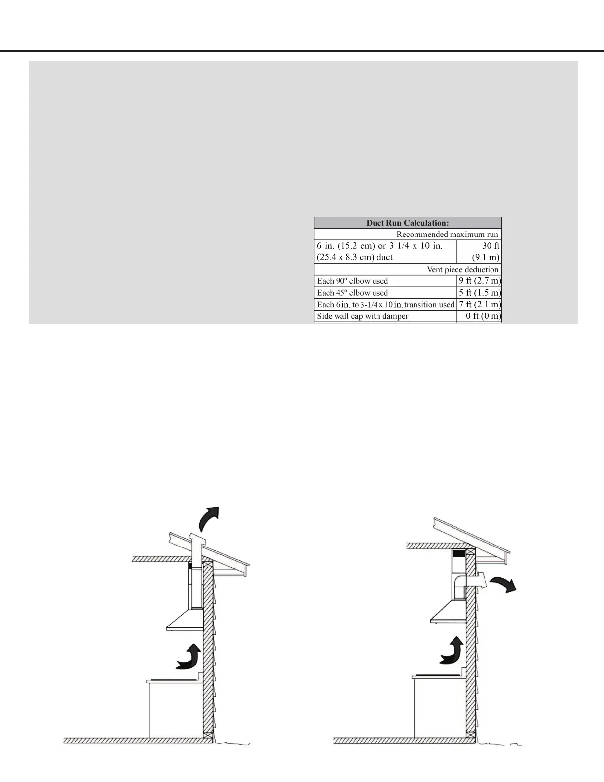 • This range hood is factory set for venting through the roof or wall.