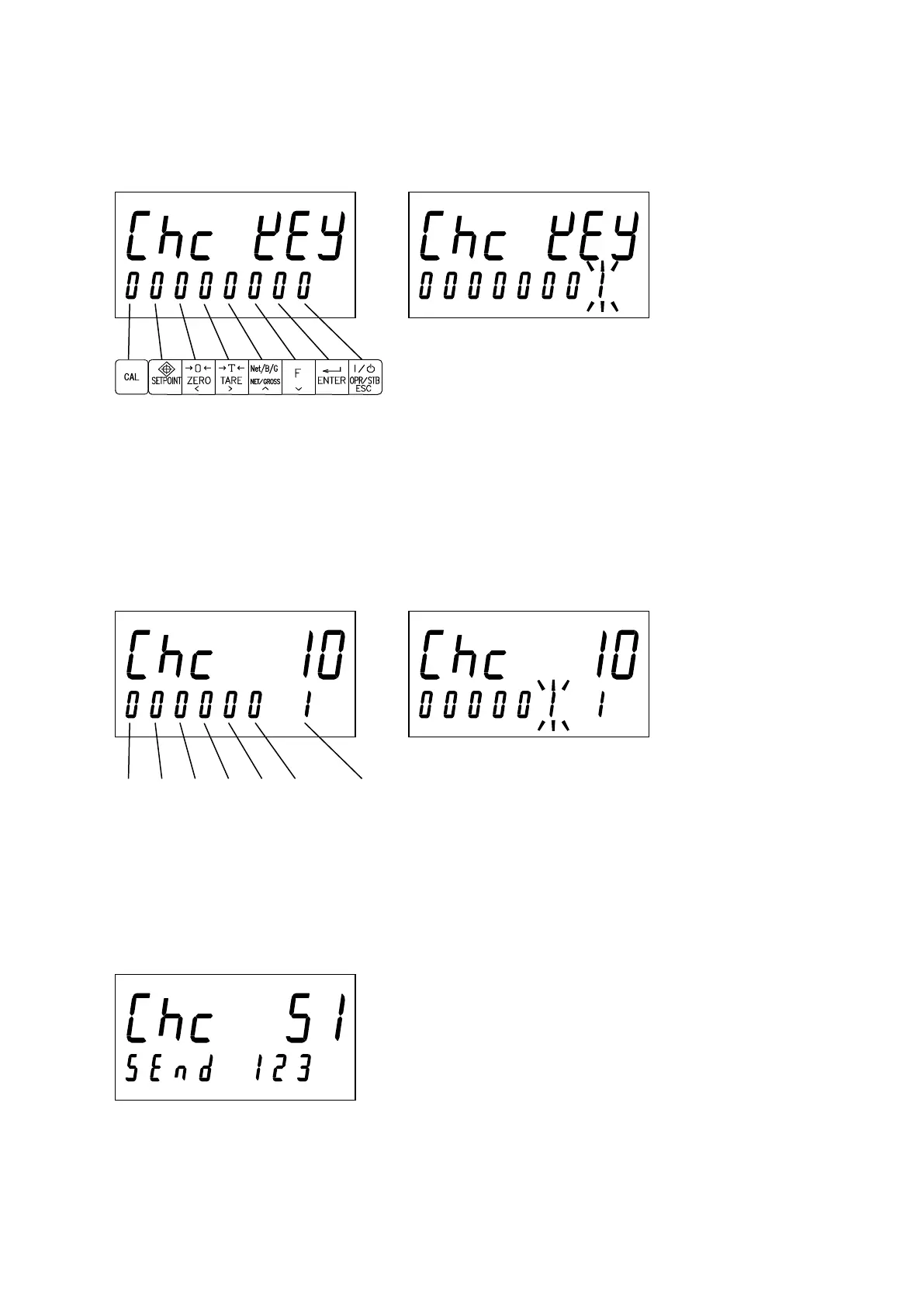When the ENTER key is pressed, “123” is sent. The communication specifications comply with the standard