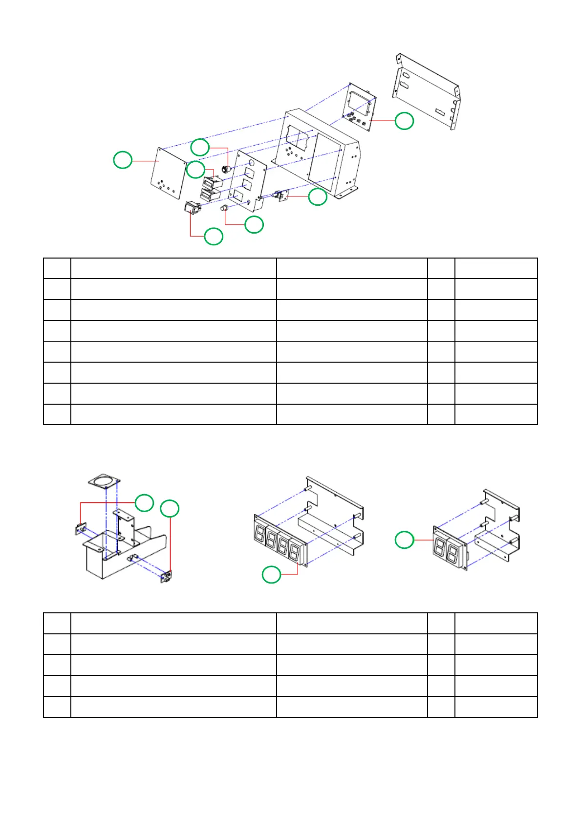 7) BIG BALL OUTLET SENSOR PART 8) TICKET FND PCB PART 9) CREDIT FND PCB PART