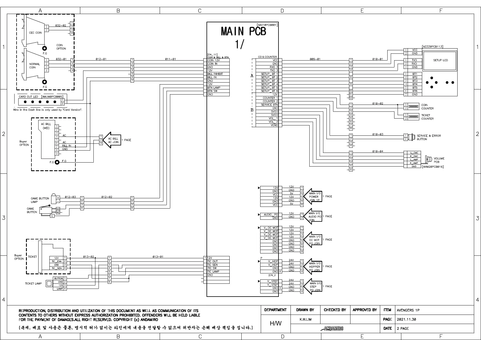 Andamiro AVENGERS - PCB Connector Locations; Main PCB Wiring Diagrams (1;4)