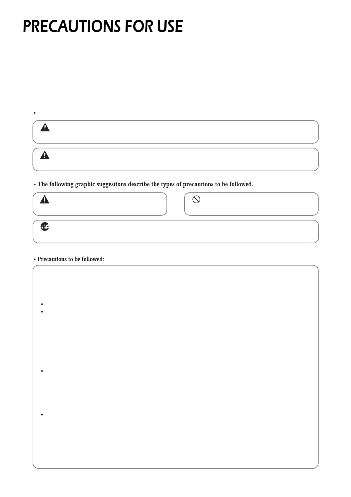 The following safety precautions are given throughout this manual. They must be strictly followed to protect those