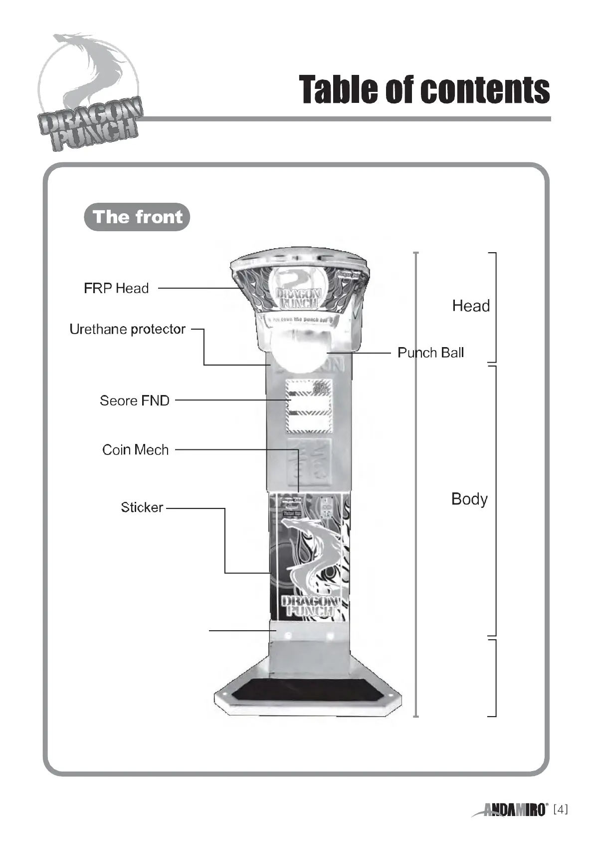 Andamiro DRAGON PUNCH - Machine Components Identification; Front View Components