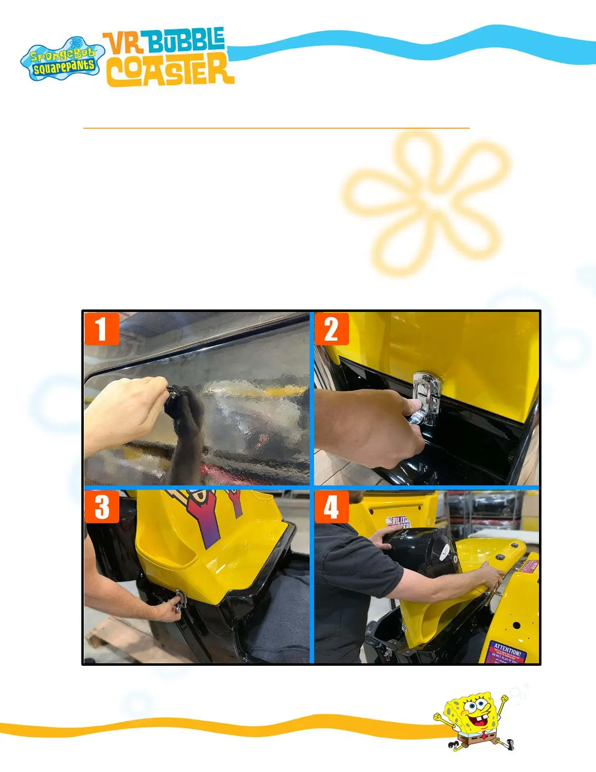 FIGURE 2 and 3 – The simulator seat has four locking tabs. Open the four clips. Two are