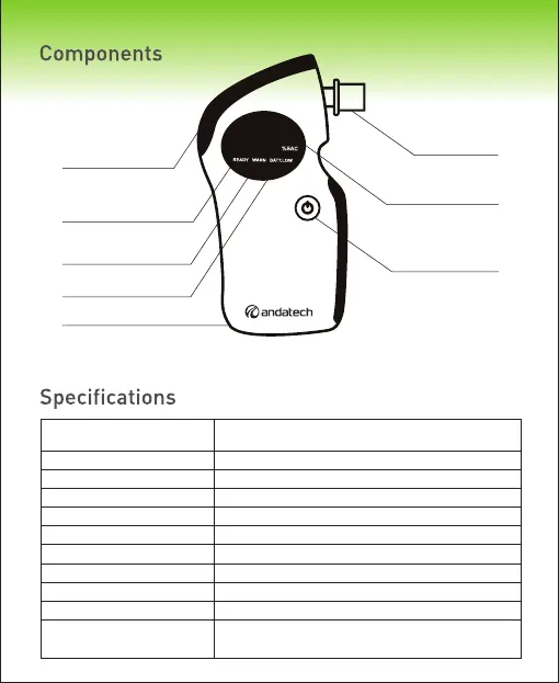 Contents: Breathalyser, mouthpieces (x5), AA batteries (x2), hand strap and user’s manual