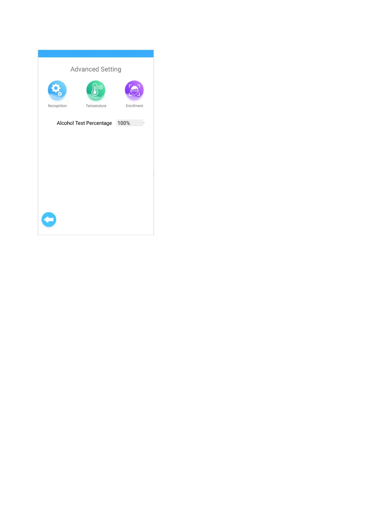 Setting menu for Recognition, Temperature and