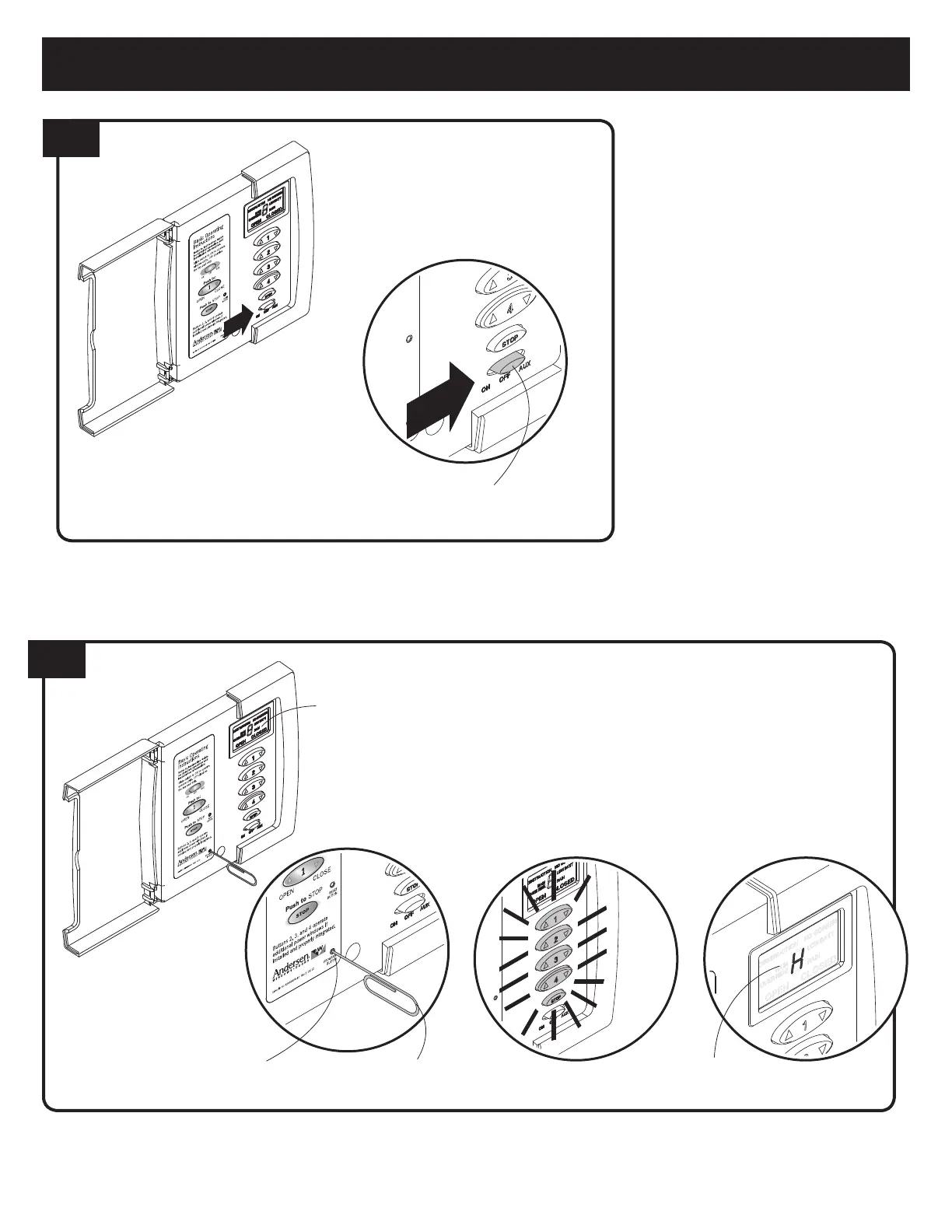 Insert paper clip into program button location and hold until console key pad blinks 3 times slowly and “H” appears on the display.