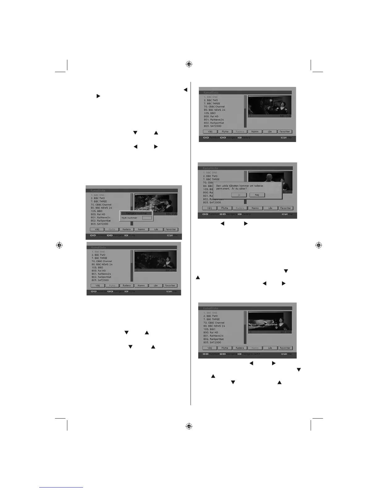 “Radera’’ på kanallistmenyn. Som på