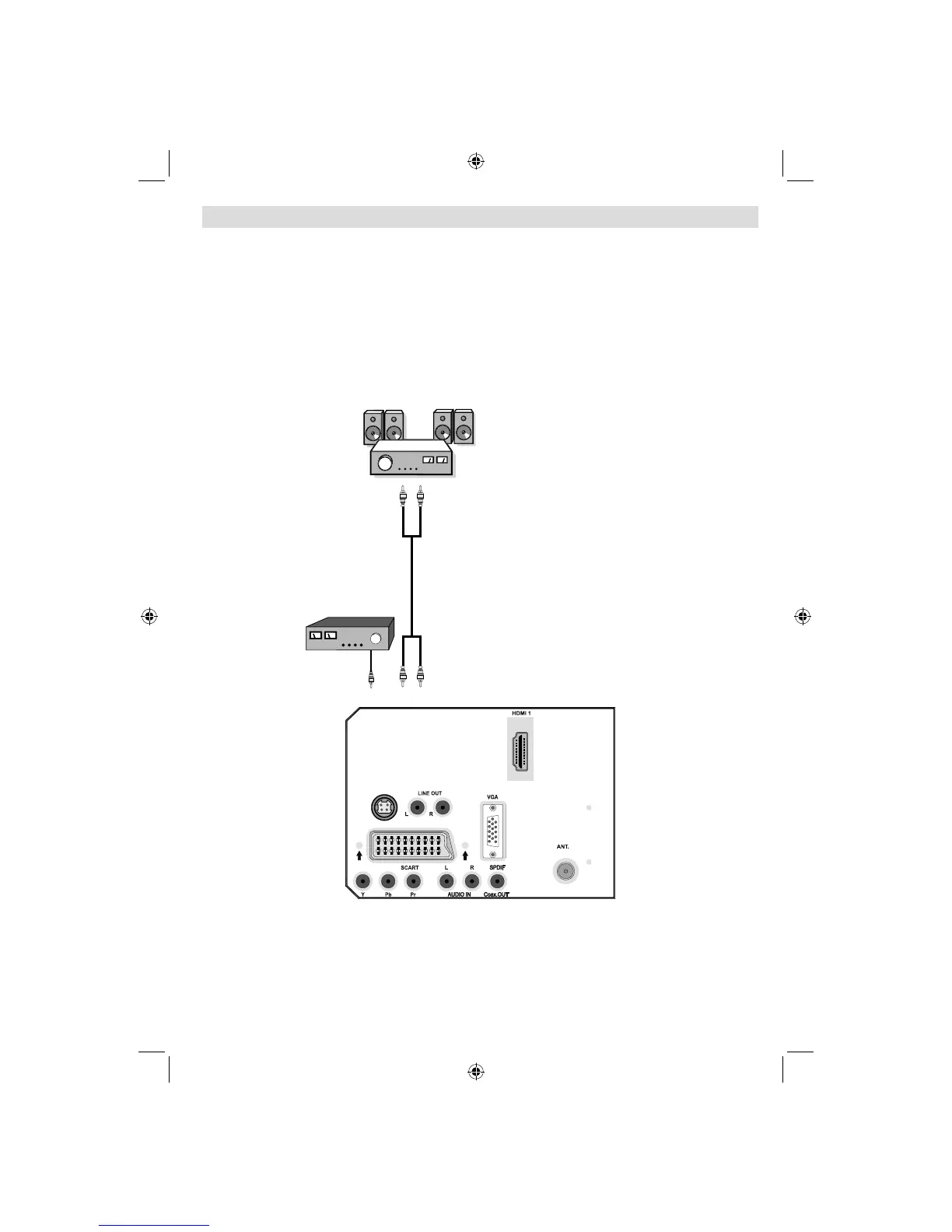 RIGHT jacks. Turn on the LCD TV and external speaker set after all connections are made.