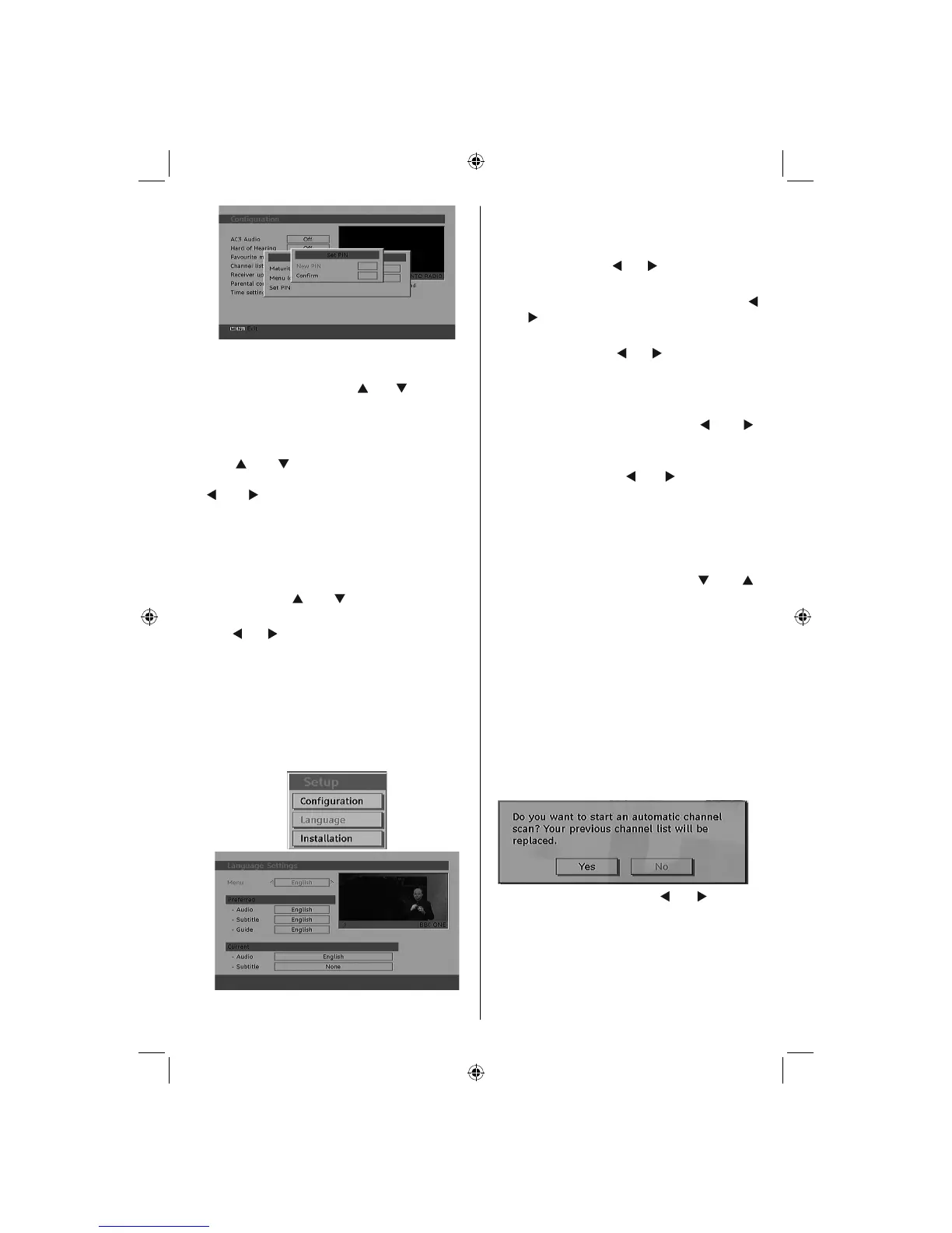 Confi guration menu by pressing “