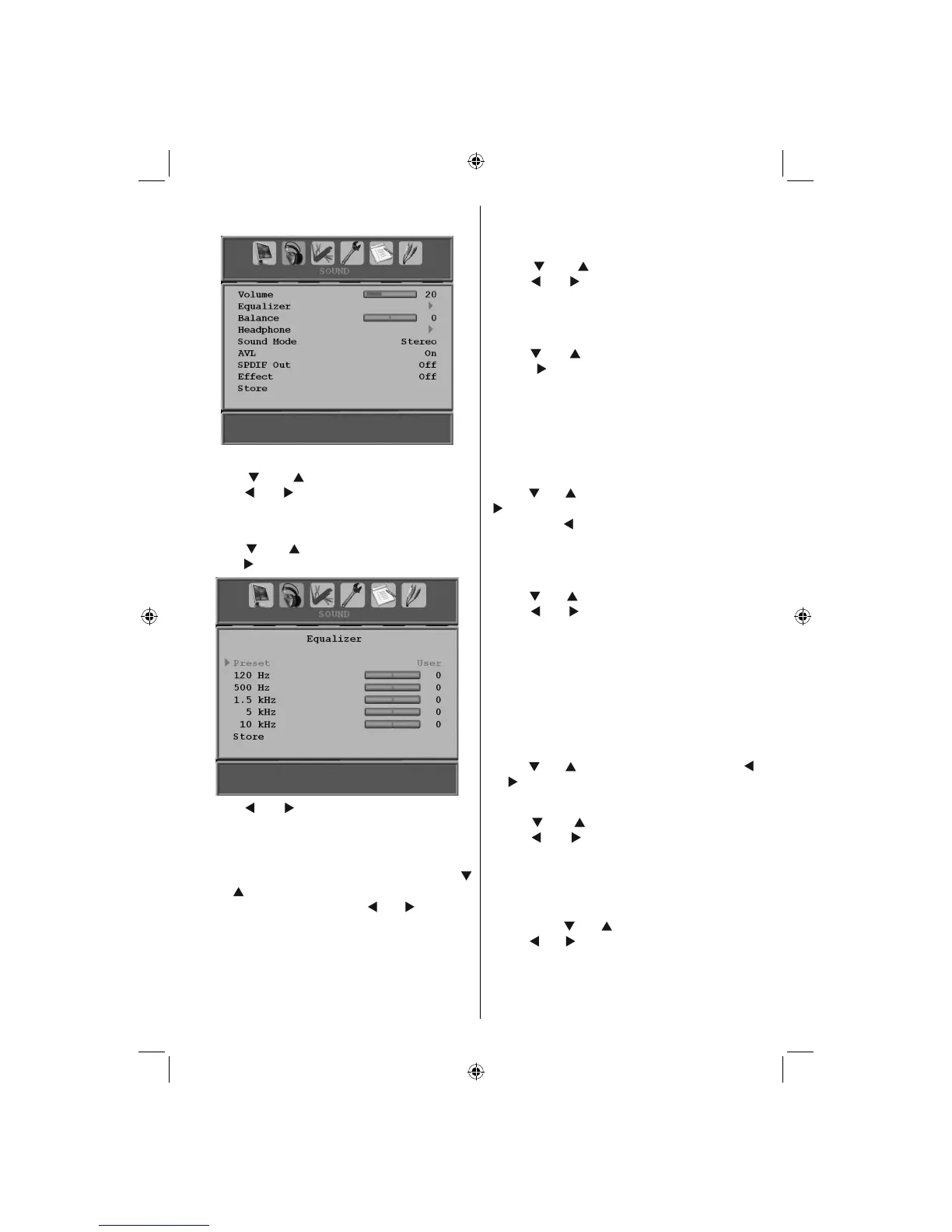Note : Equalizer menu settings can be changed only