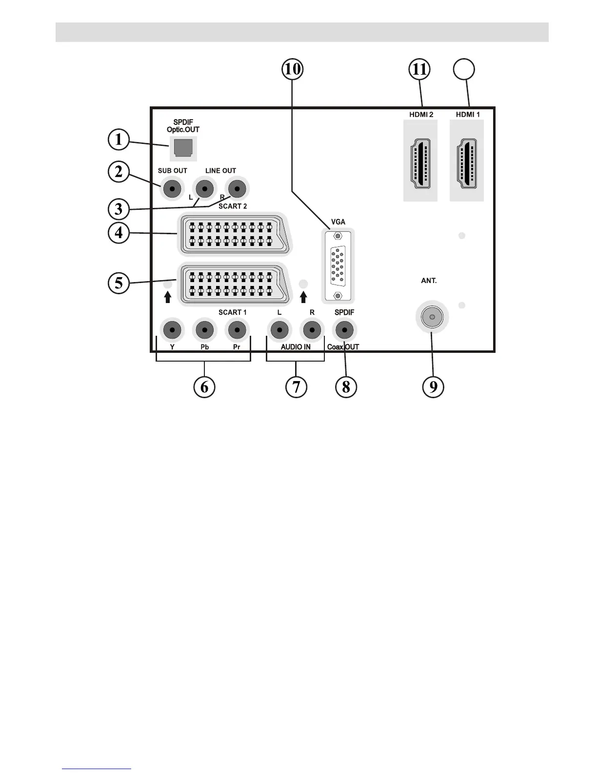 4. SCART 2 ingångar eller utgångar för externa enheter.