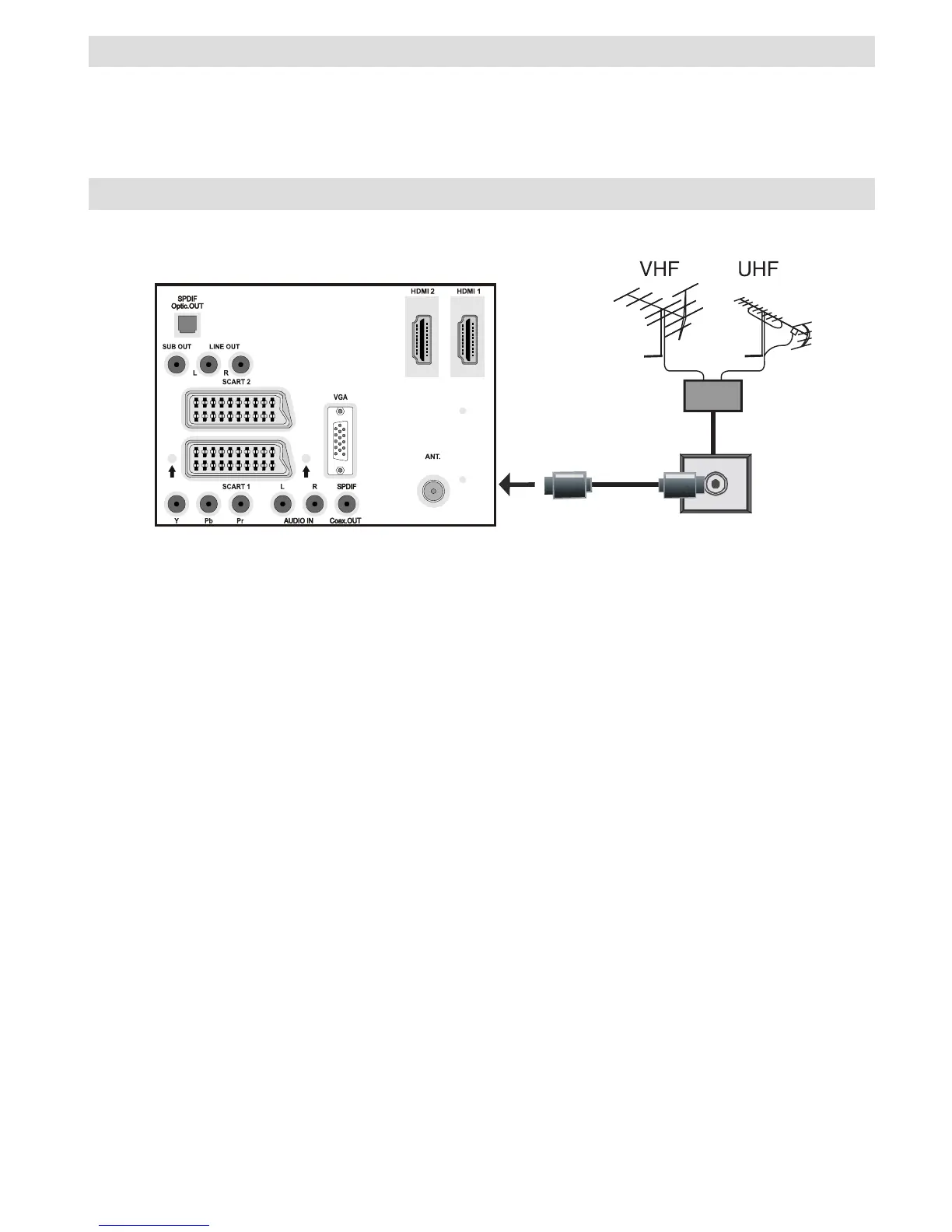 • Connect the aerial or cable TV plug to the AERIAL INPUT socket located at the rear of the TV.