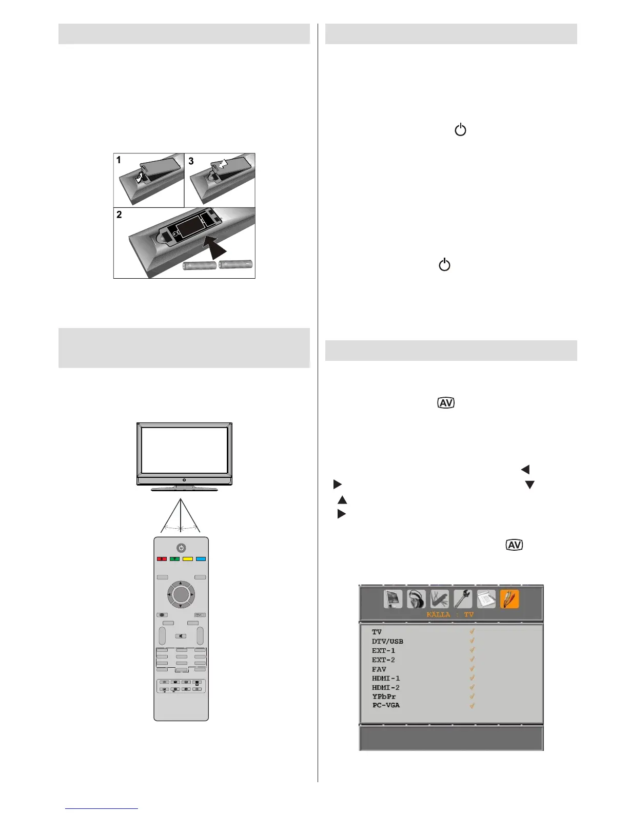 Notera: Ta bort batterierna från fjärrkontrollen om den