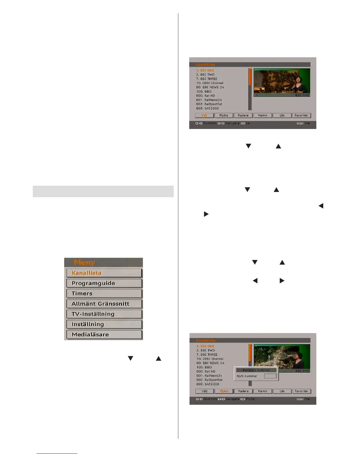 knappen “OK”, medan “Välj” på kanallistmenyn
