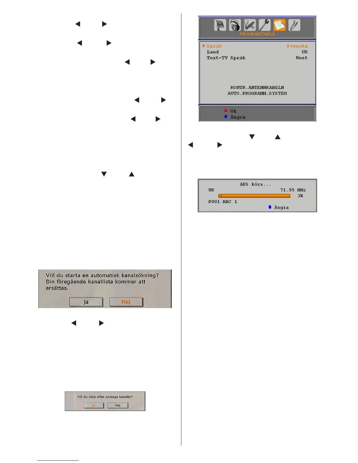 “ ” eller “ ”. Tryck på OK eller RÖD knapp
