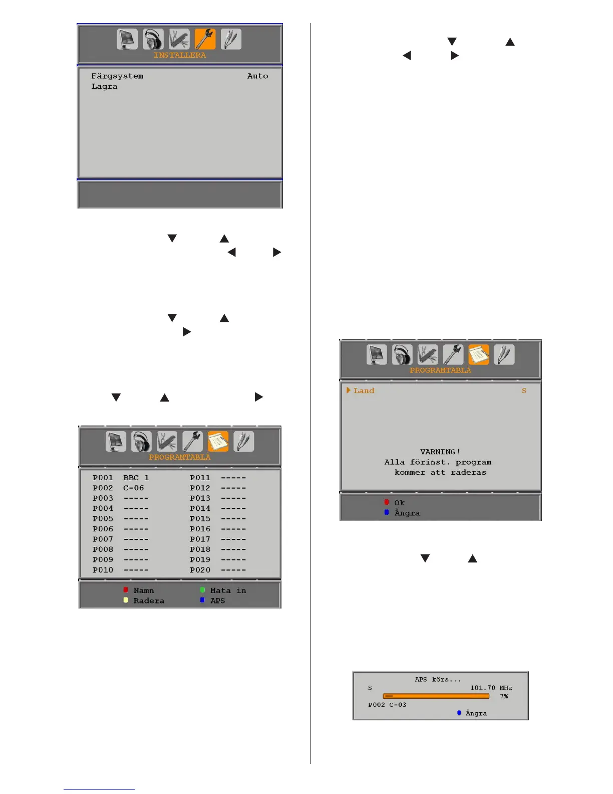 Färgsystem. Använd knappen “ ” eller “ ” för