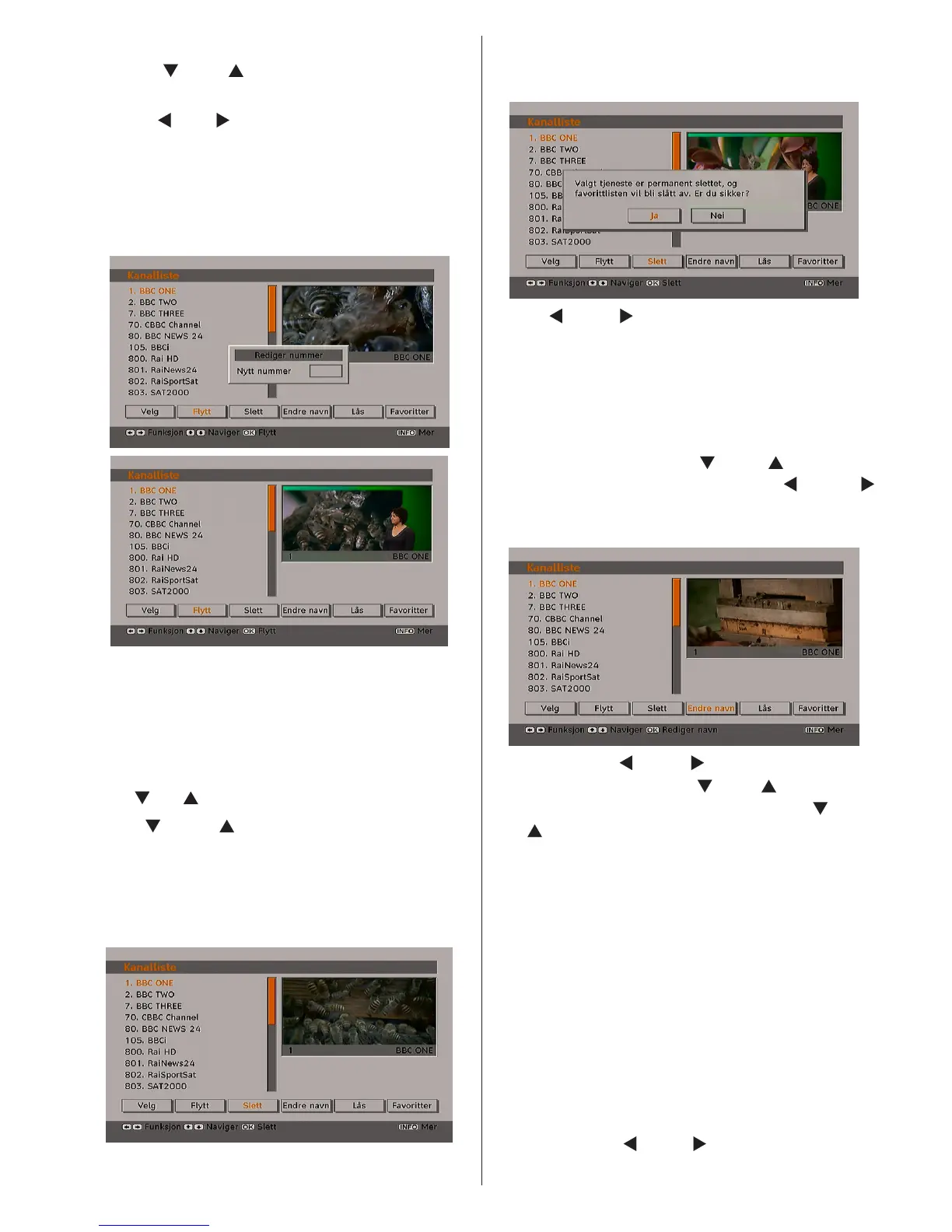 kanalen ved å trykke “ ” og “ ” . Marker