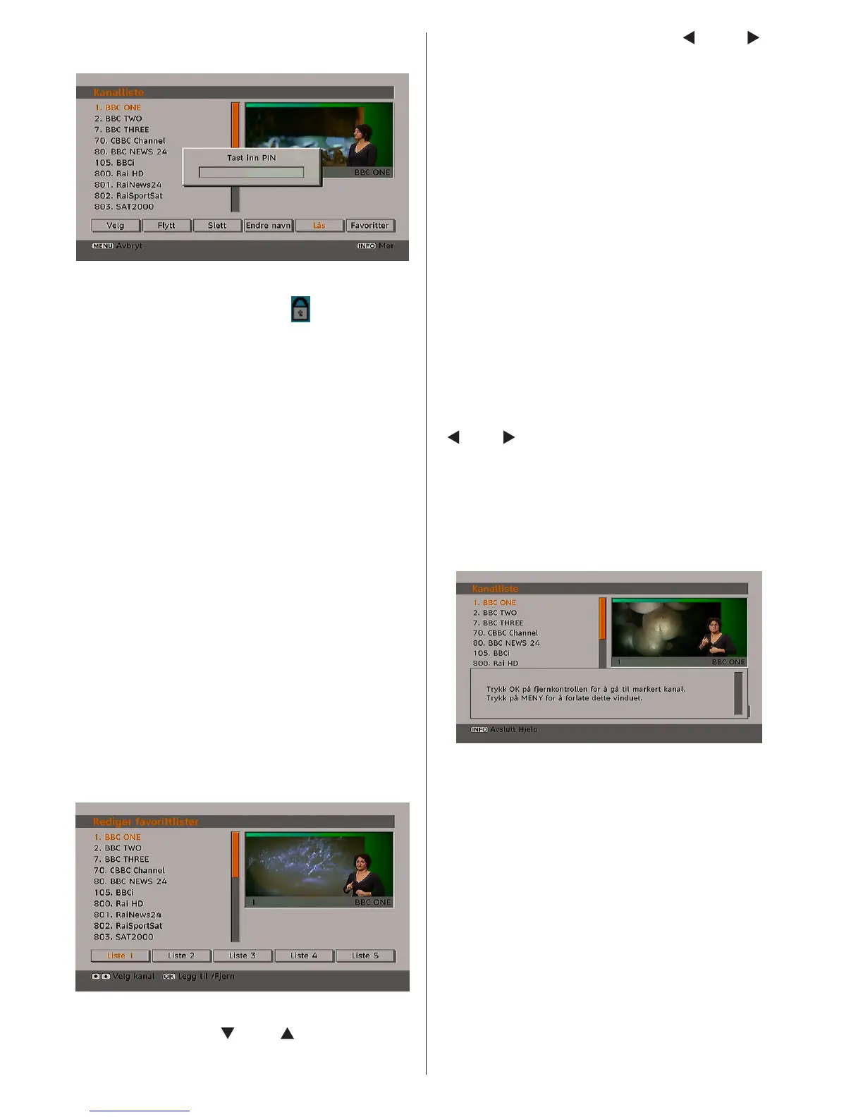 hjelp til menyfunksjonene. For menyen Kanalliste