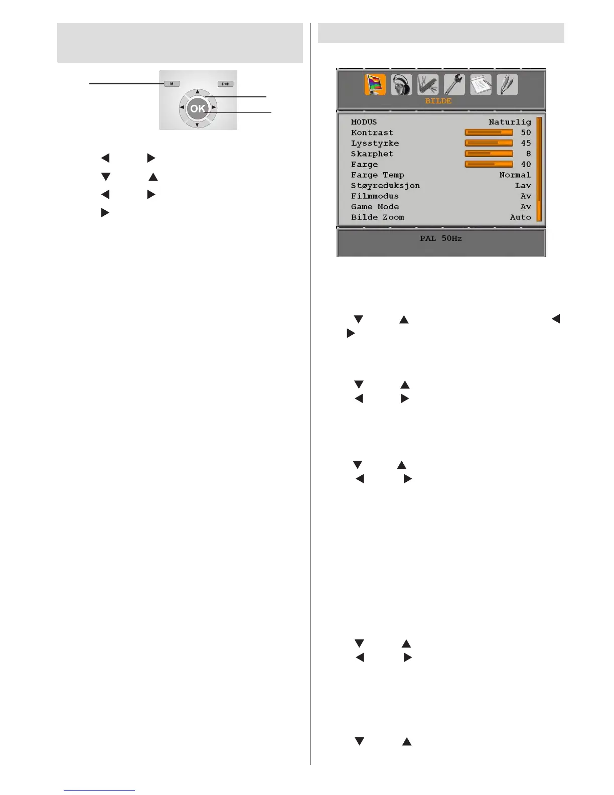 i det analoge TV-menysystemet. For å velge alternativer
