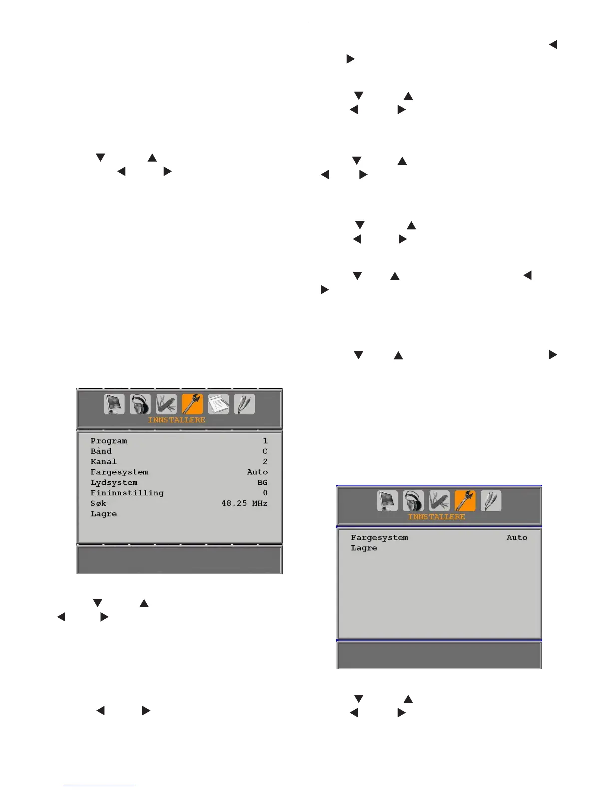 Trykk “ ” og “ ” for å velge søk. Bruk “ ” eller