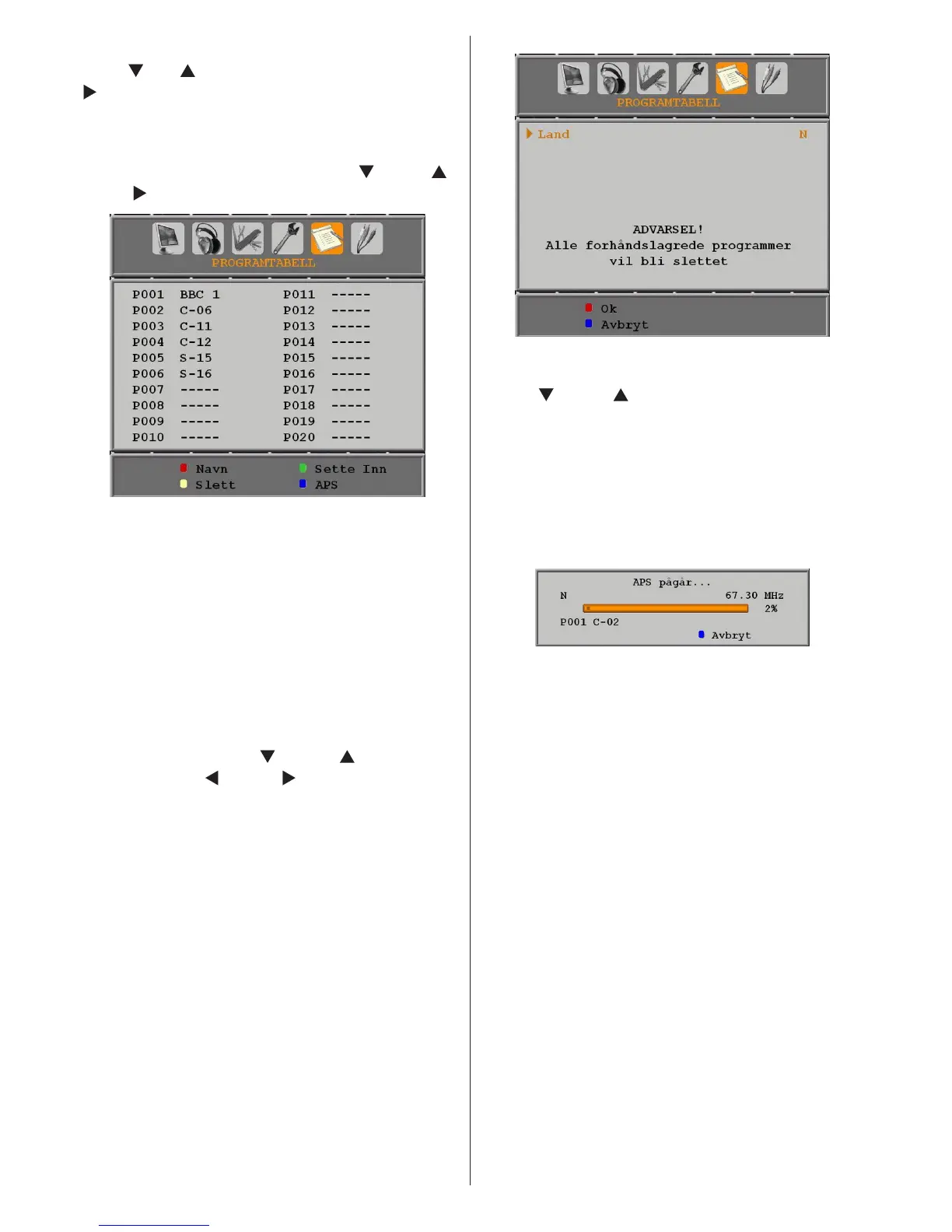 Velg Programtabell ved å trykke “ ” eller “ ”.