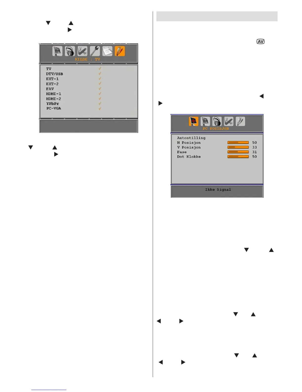 Trykk deretter “ ” eller OK. Kildemenyen vises