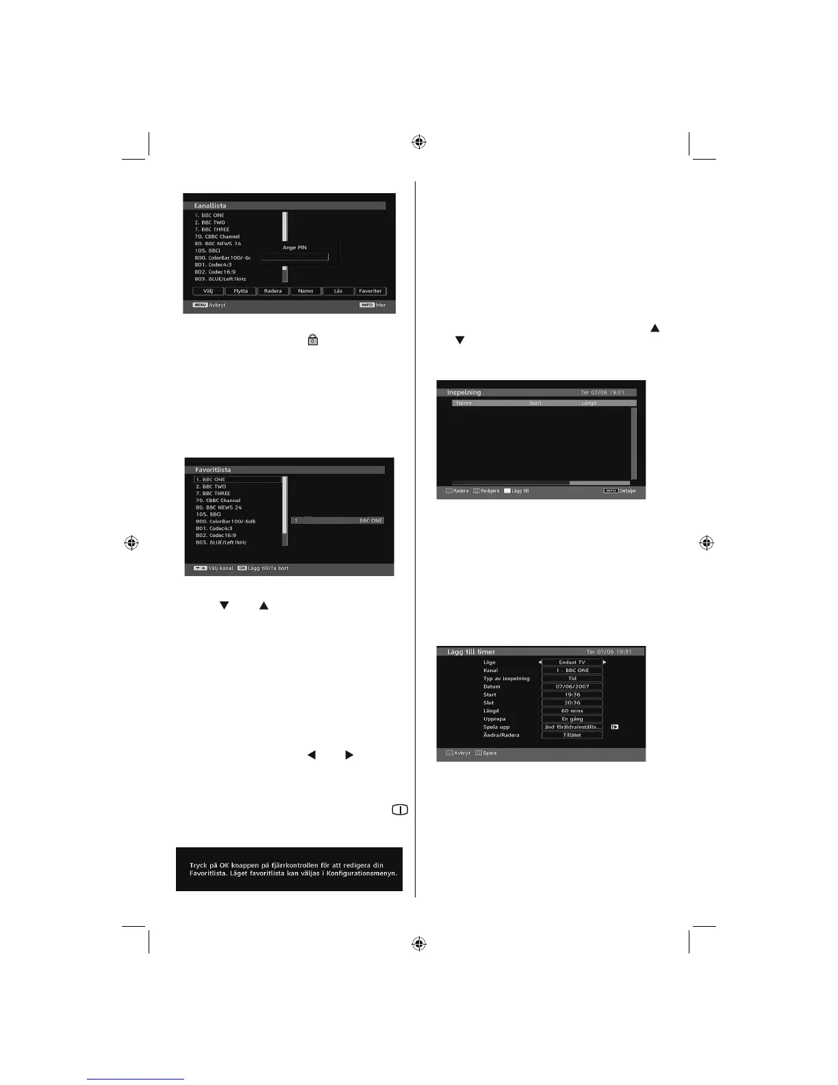 fjärrkontrollen. Låssymbolen “ ” visas bredvid vald