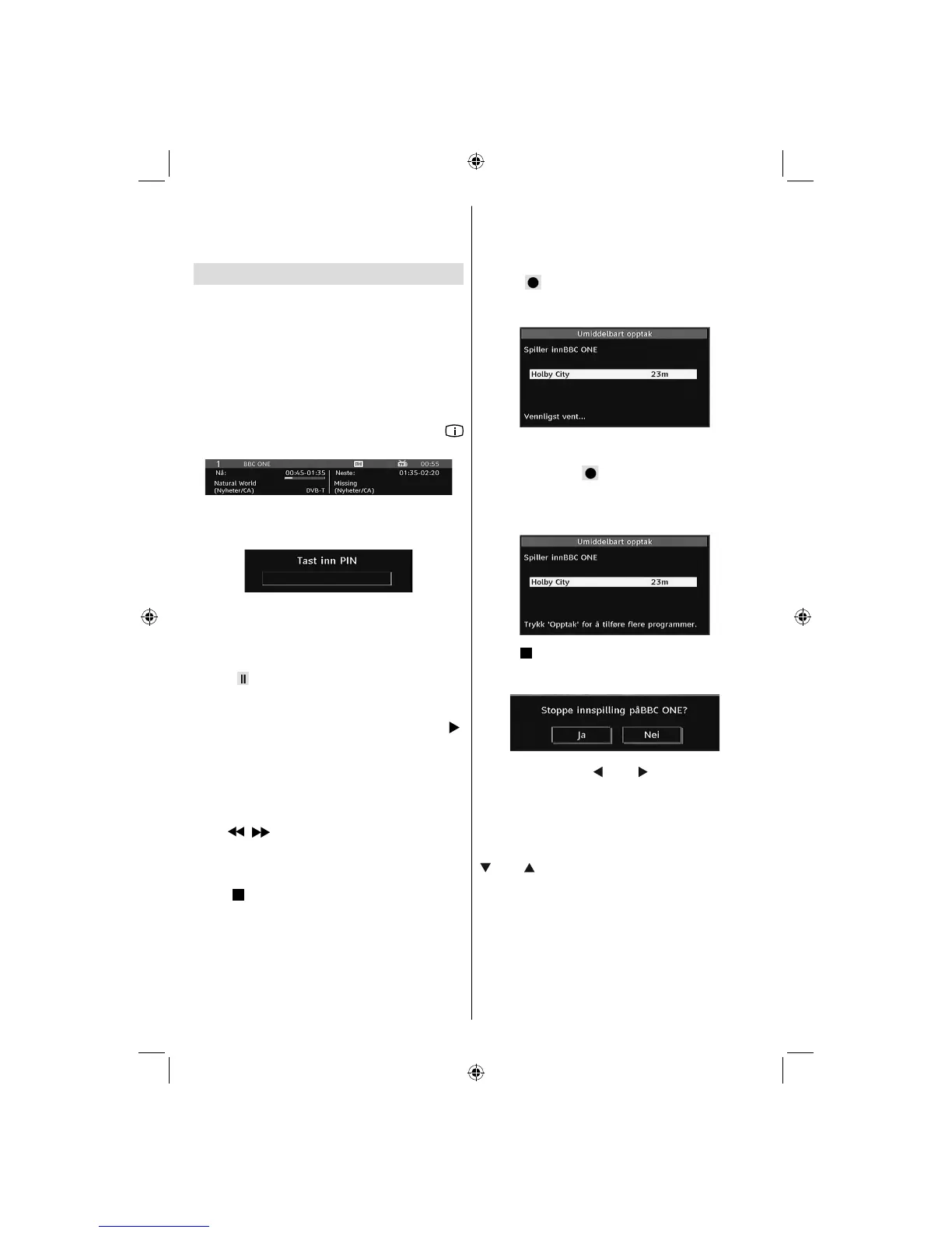 TV-en for å aktivere opptaksfunksjonen. Hvis ikke vil opptak