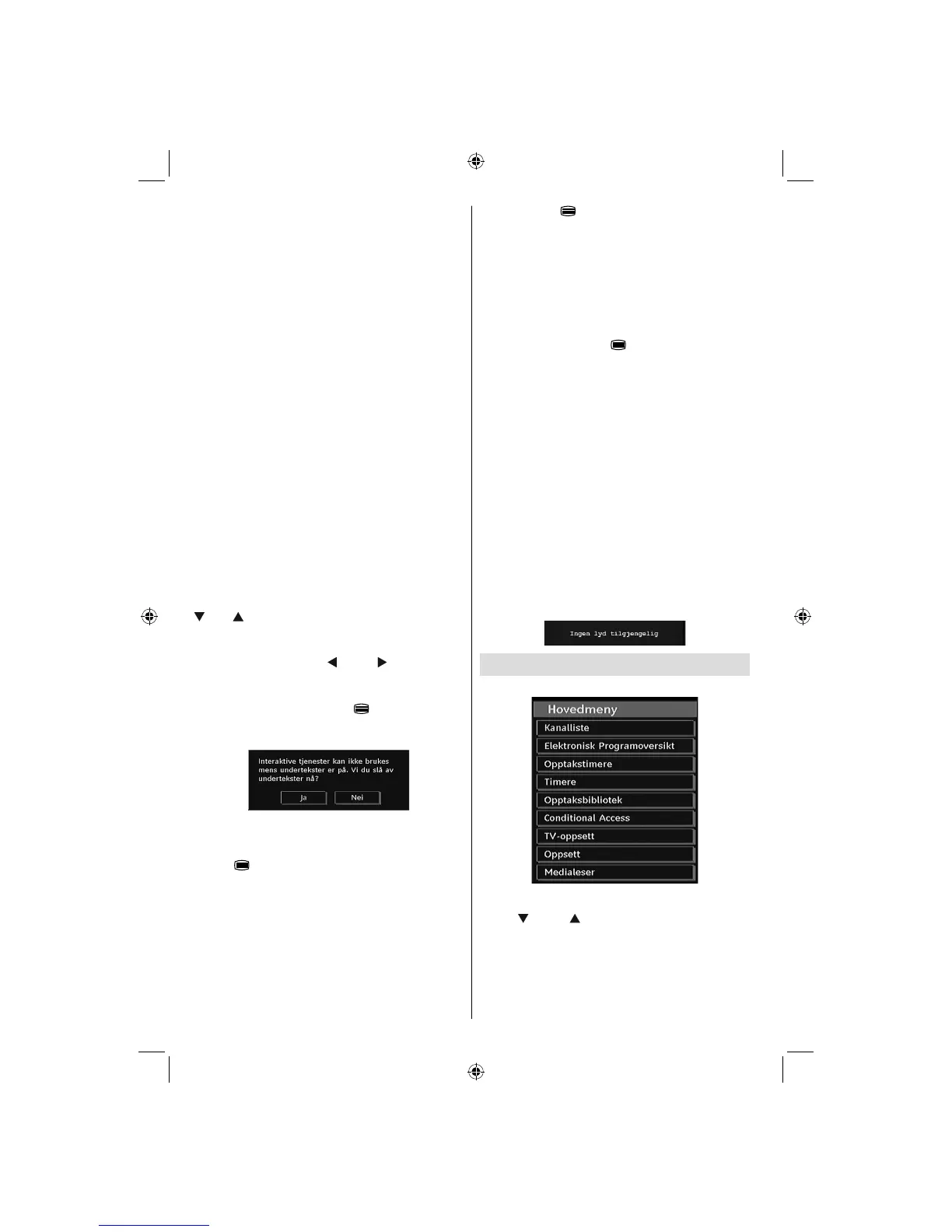 • Når knappen “ ” trykkes, går TV-apparatet tilbake