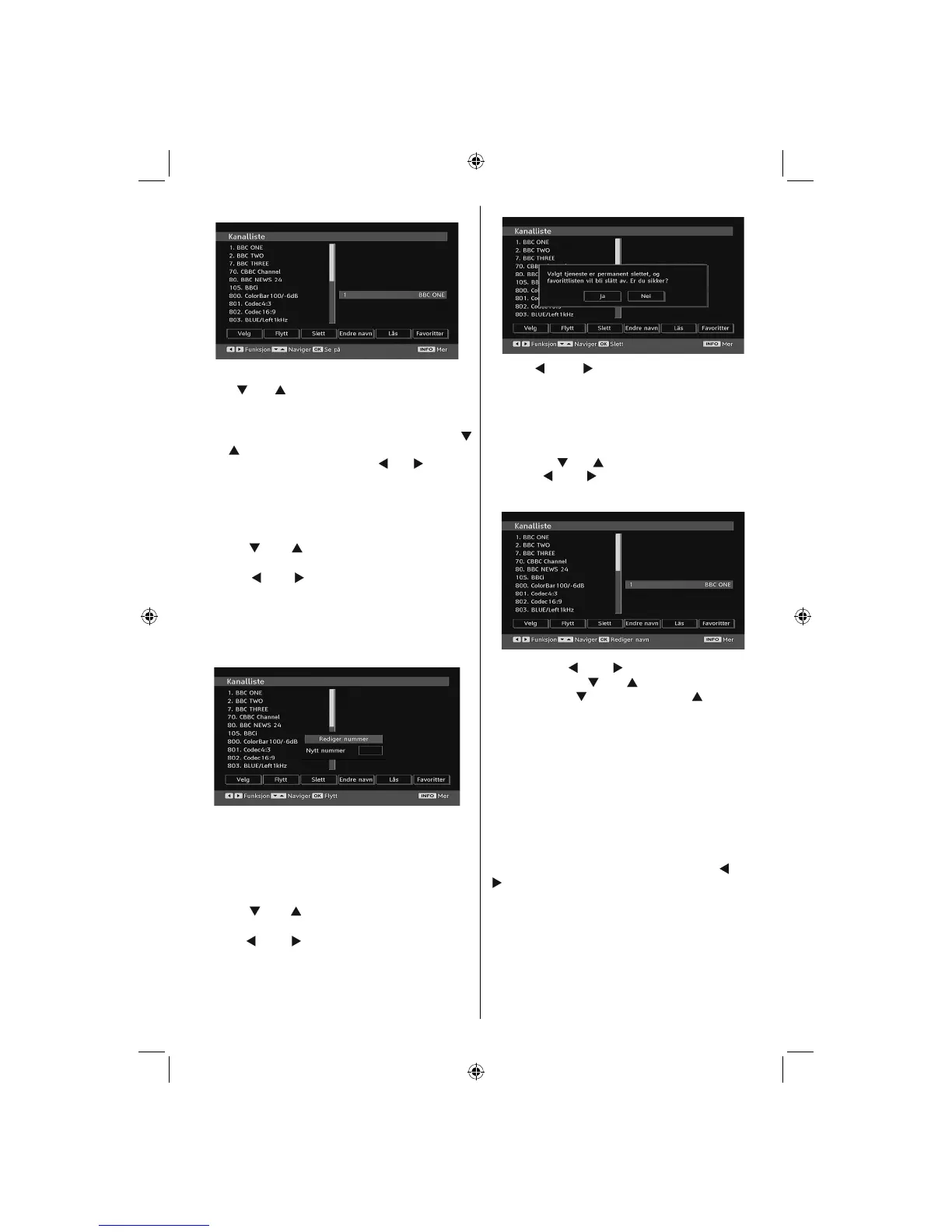 • Trykk “OK” for å slette merket kanal i kanallisten.