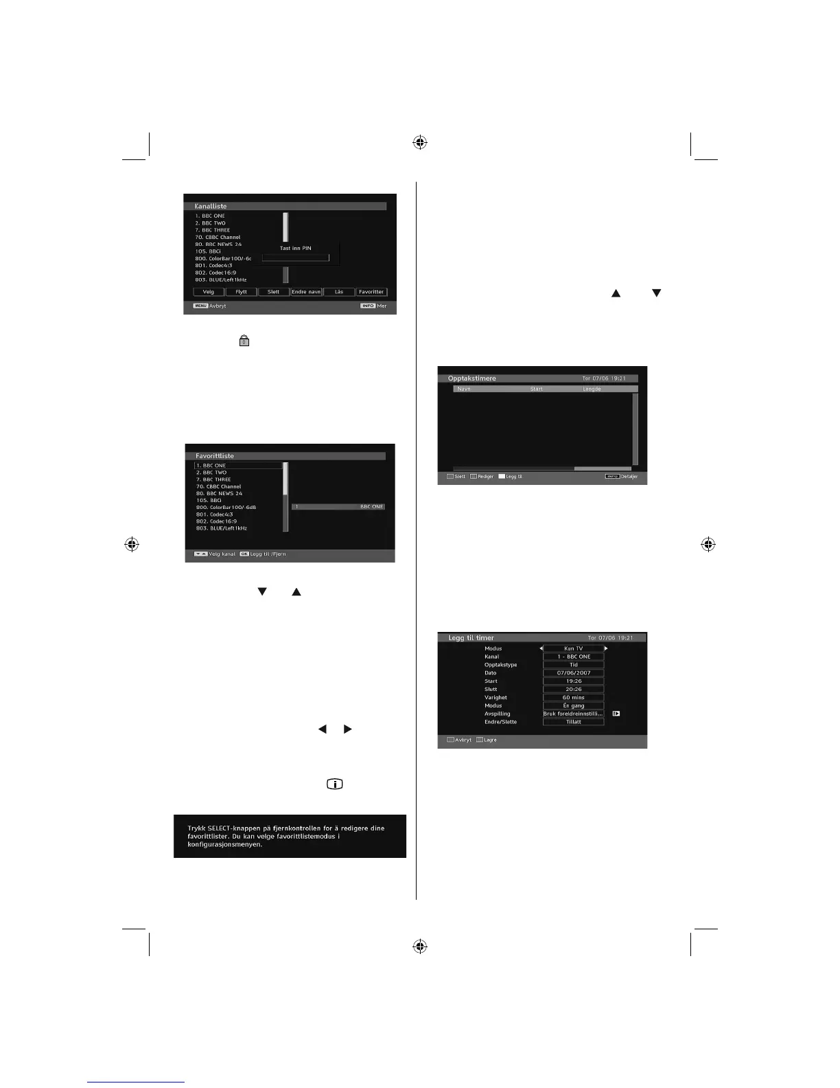 • Merk kanalen du ønsker å fjerne fra favorittlisten og