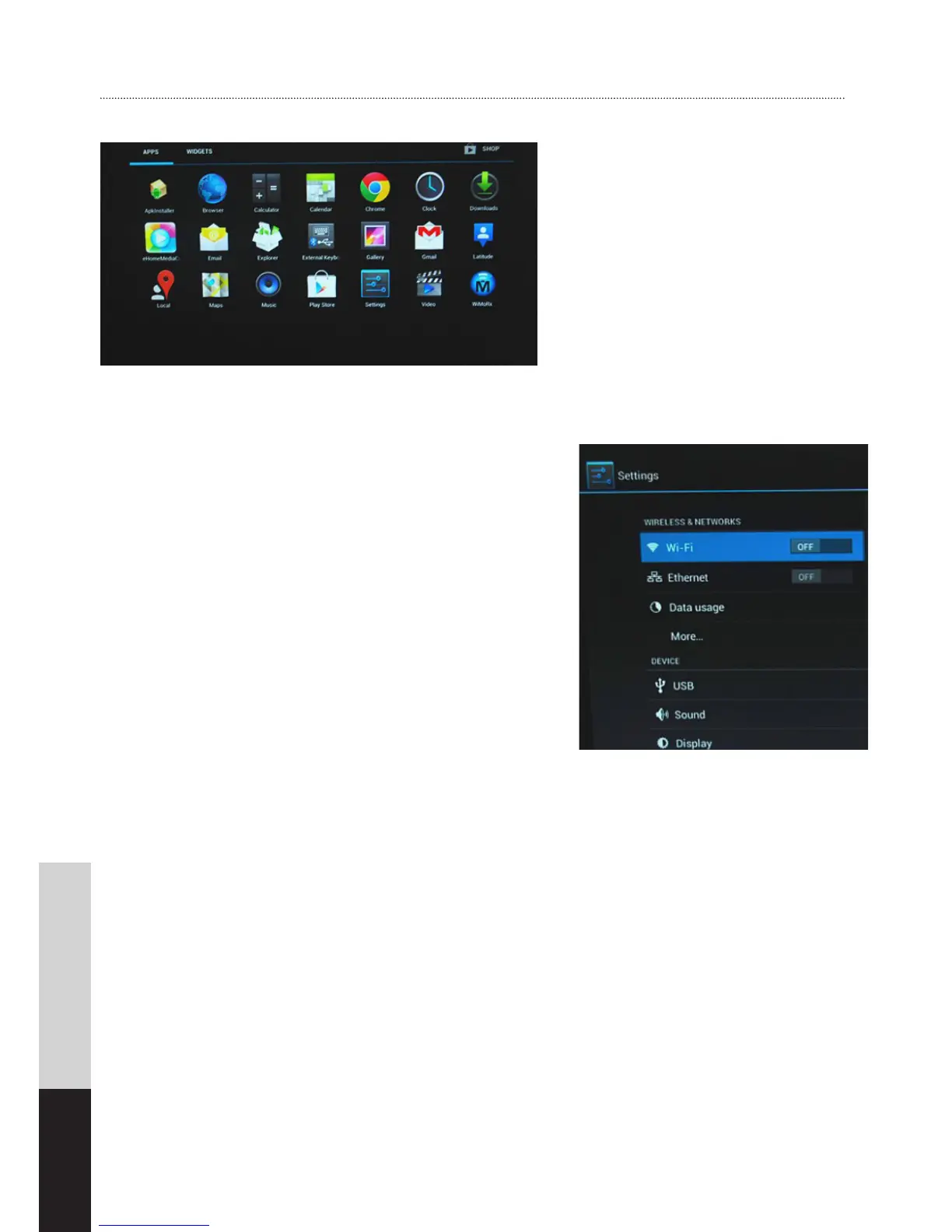 kabelen, klikk på “Settings” -> “more” -> “Ethernet” -> og
