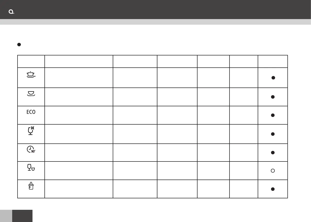 Program Description of cycle Detergent Pre/Main Runing Time (Min) Energy (Kwh) Water(L) Rinse Aid