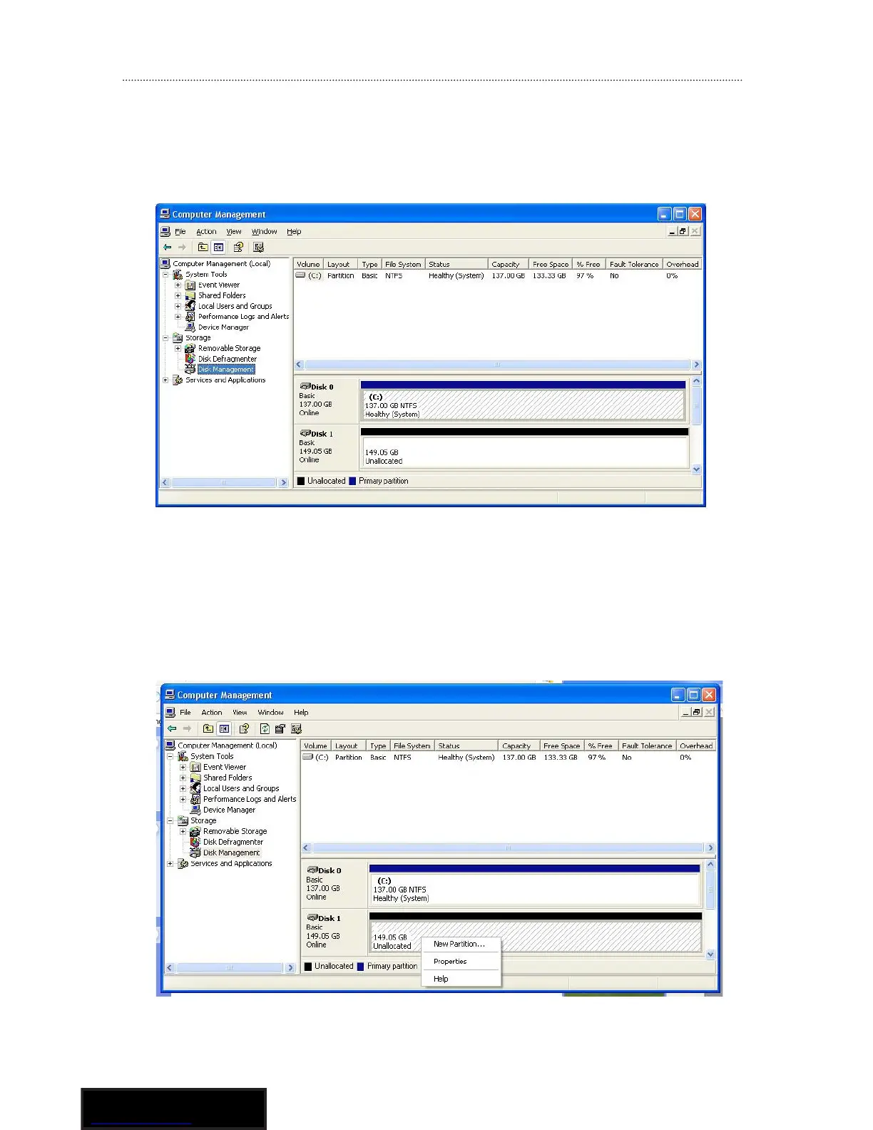 the left pane of the Computer Management window, click Disk