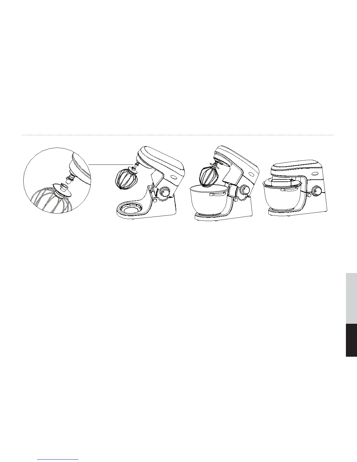 2. Sett inn deigkroken, eltekroken eller vispen.