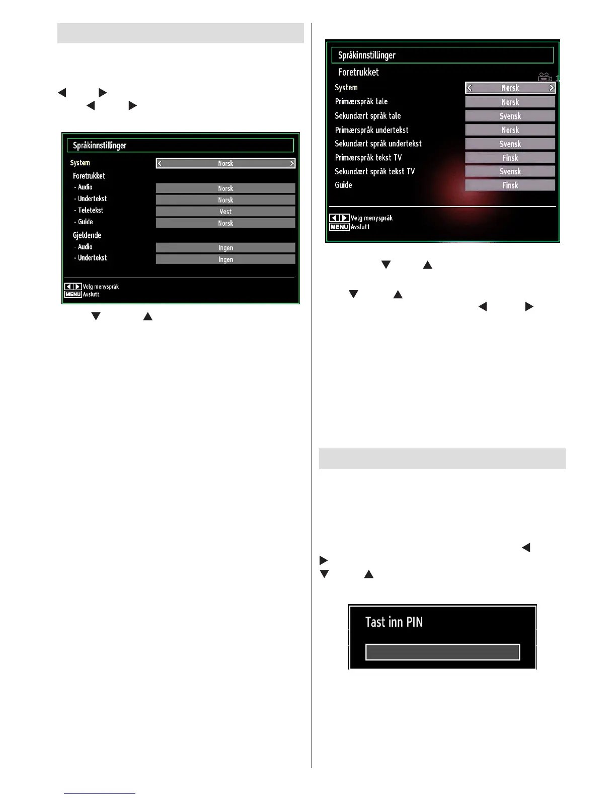 Tekst-TV: • Stiller inn språk for tekst-tv.