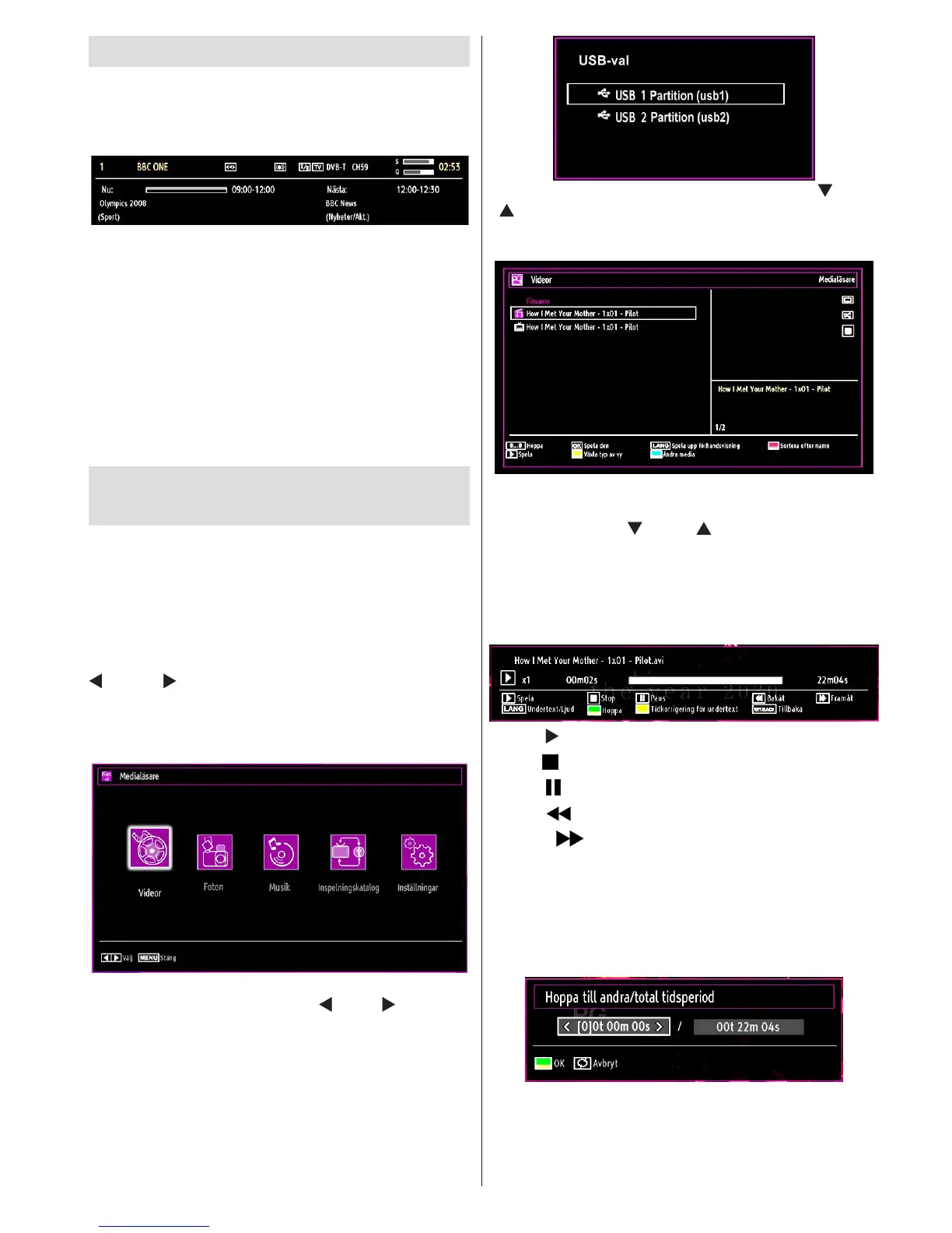 anslutna USB-stickan. Använd “ ” eller “ ”-knappen
