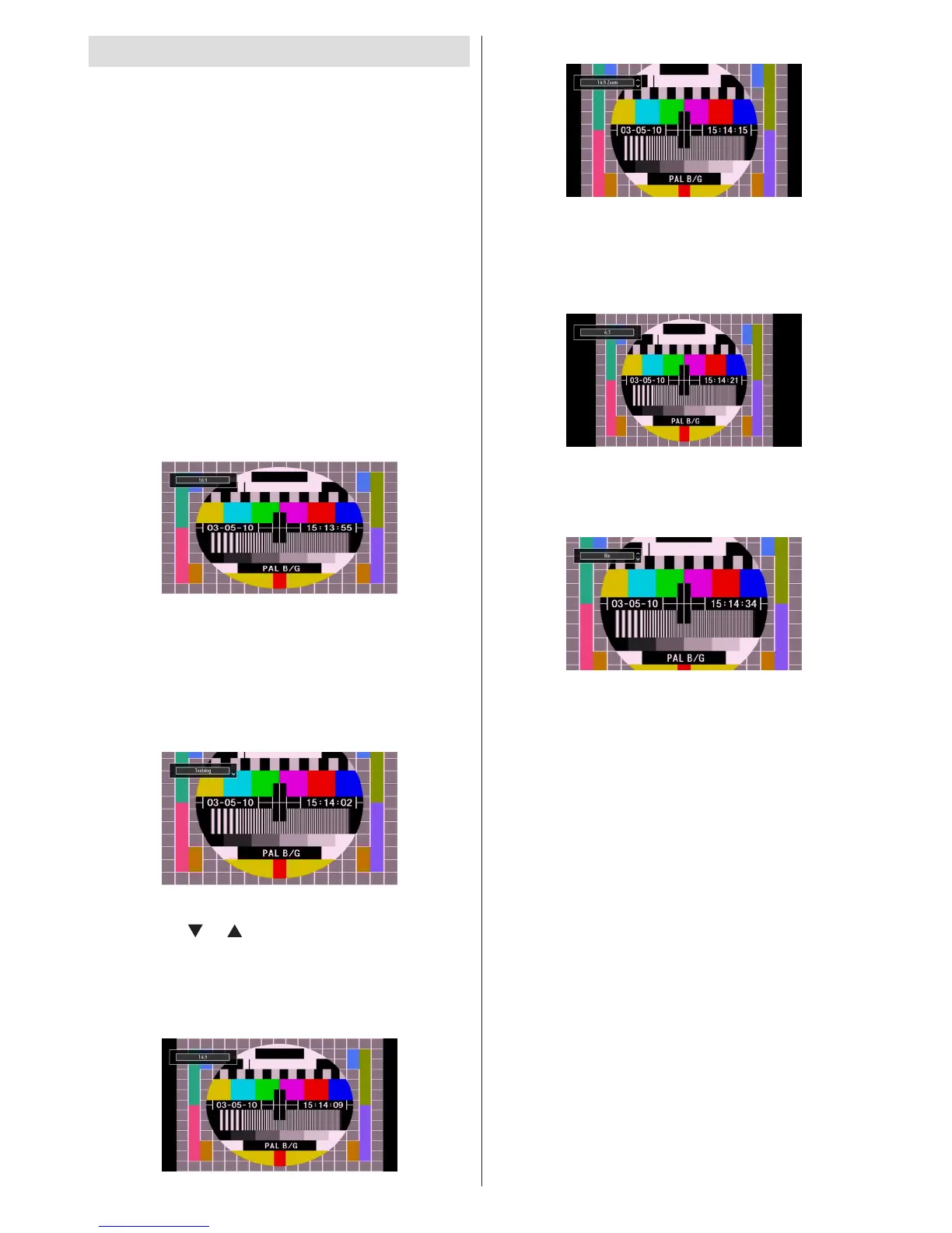 ställd till, 14:9 Zoom, Biograf eller Textning.