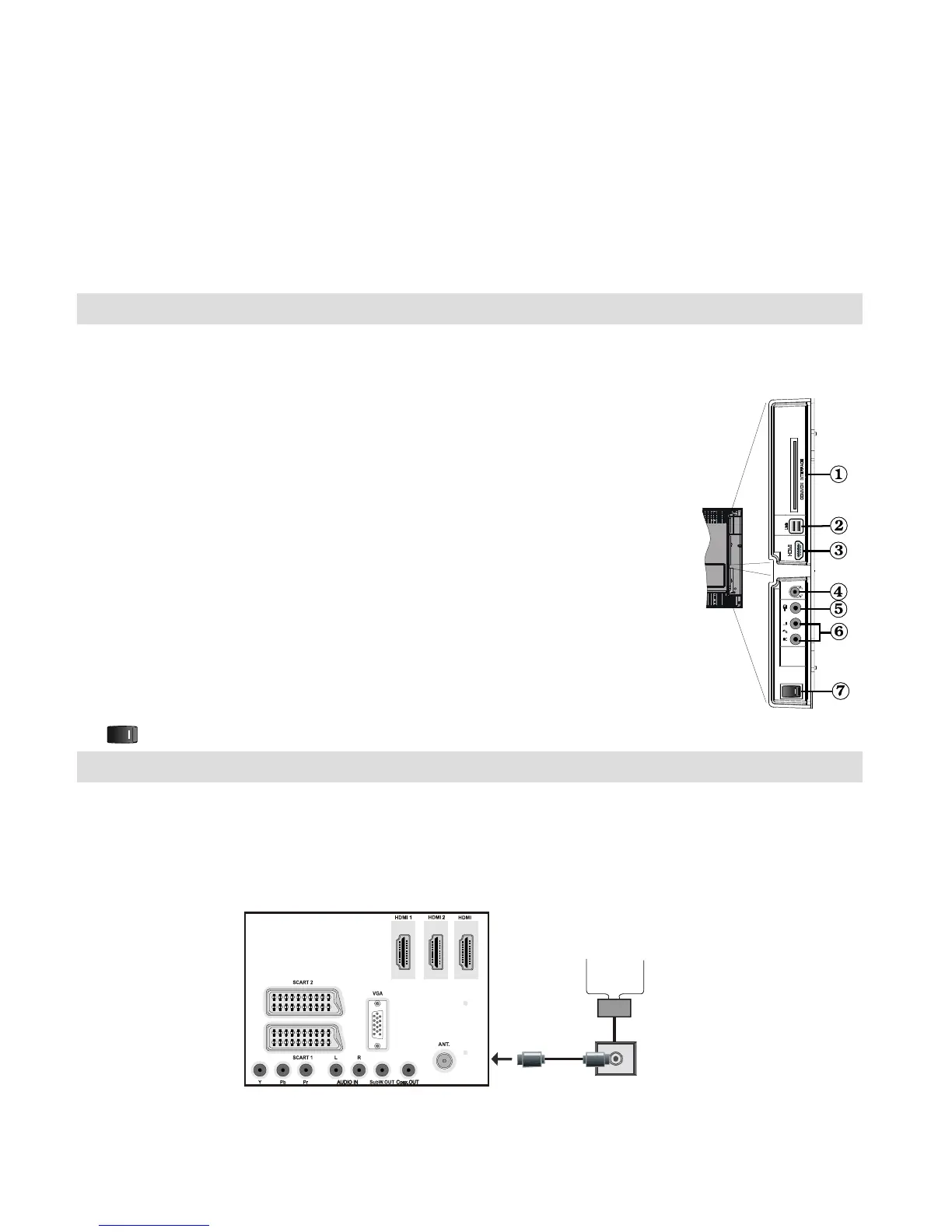 Note: that if you use a decoder or a media recorder, you should connect the aerial cable through the device