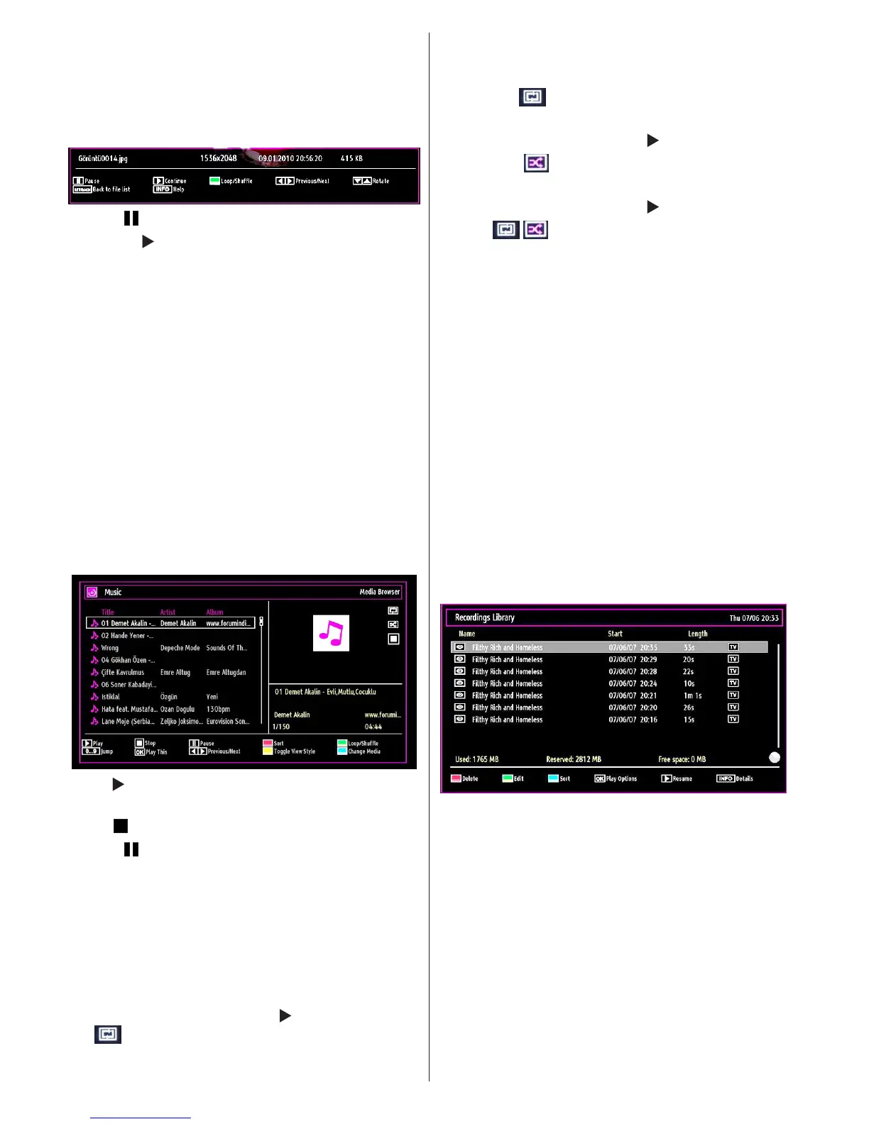 the symbol, the TV will play the next music/video