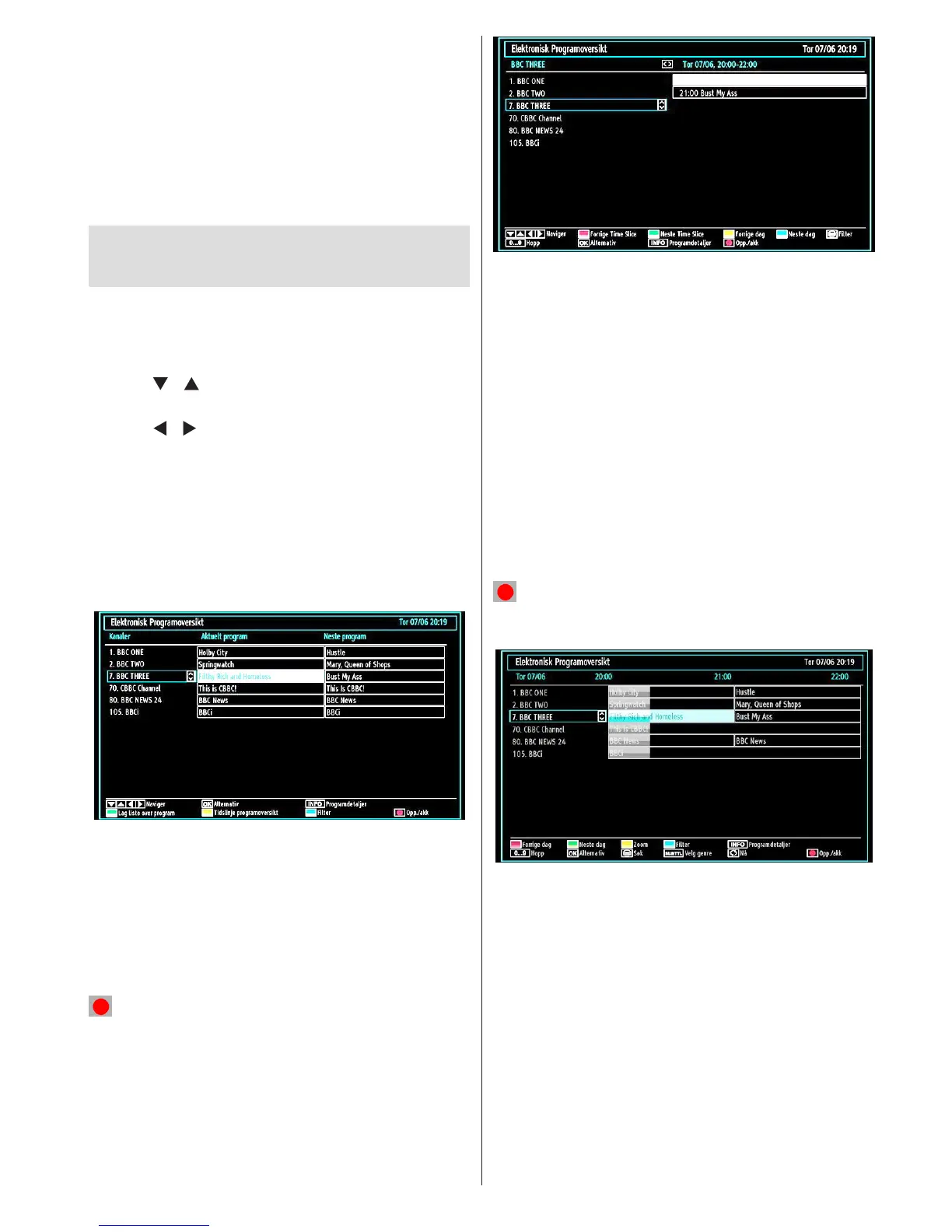 For å vise EPG-menyen kan du trykke på EPG-