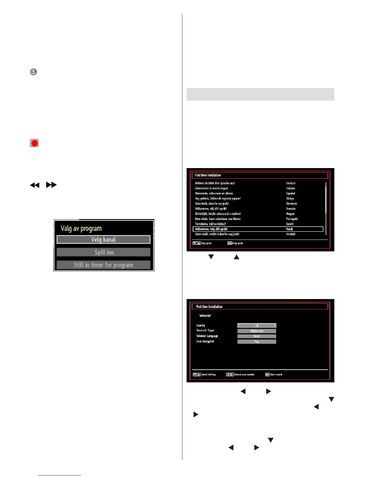 Merk: Bytting til en annen TV-kanal eller kilde er ikke
