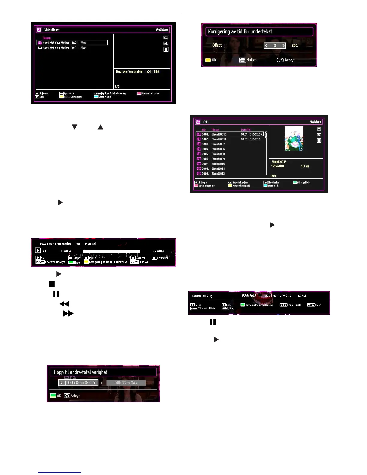 Du kan bruke “ ” eller “ ” for å velge en videol og