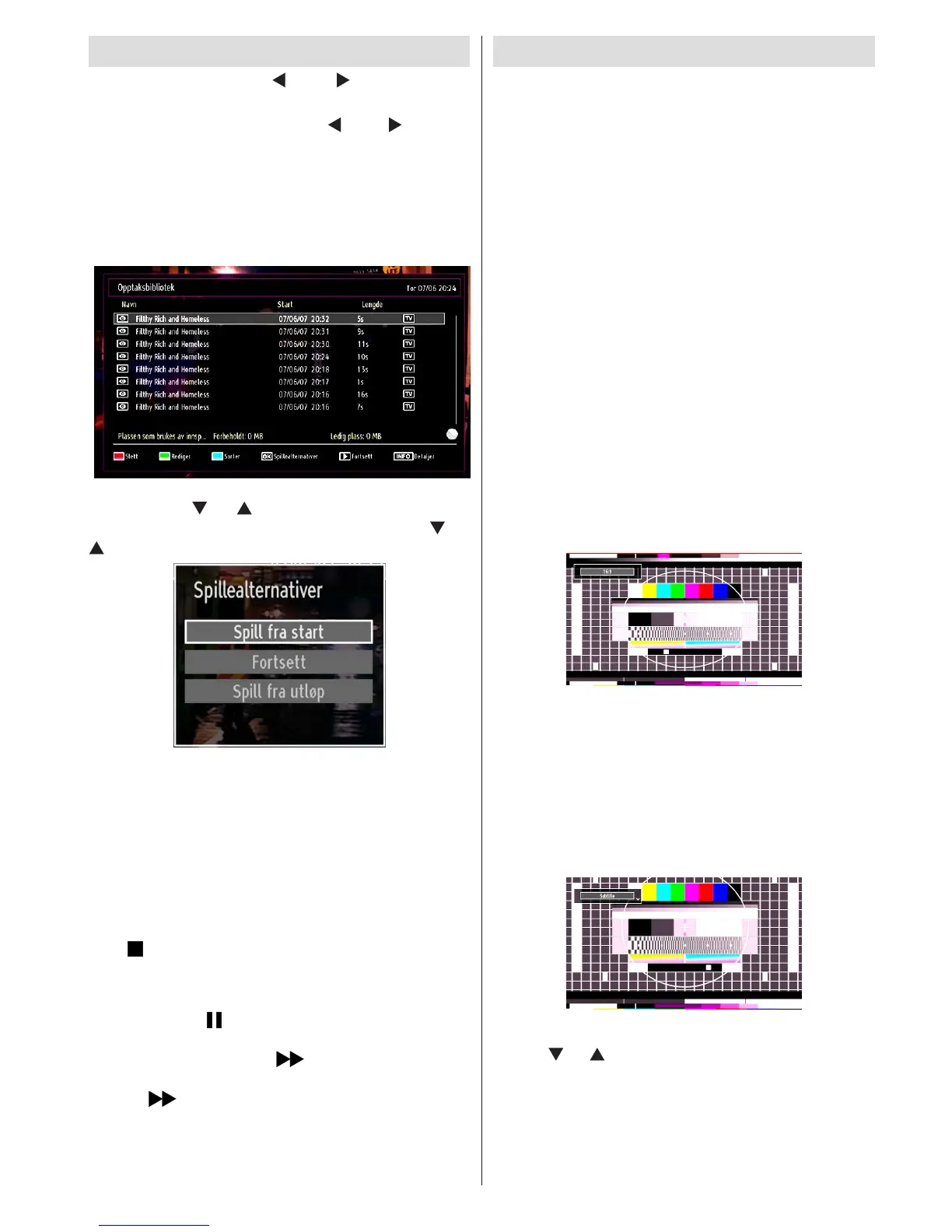 Hvis du klikker (PAUSE) mens du ser innspilte