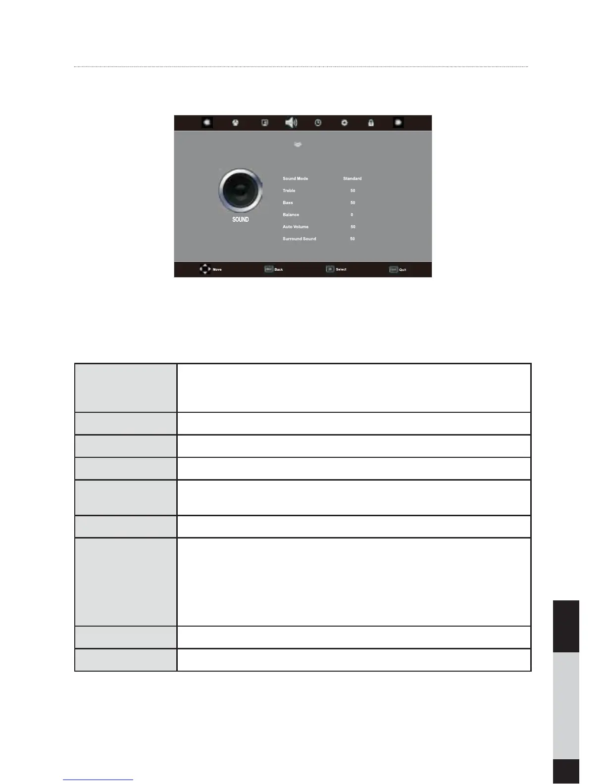 3. Press the buttons to select the option you want to adjust in SOUND menu.