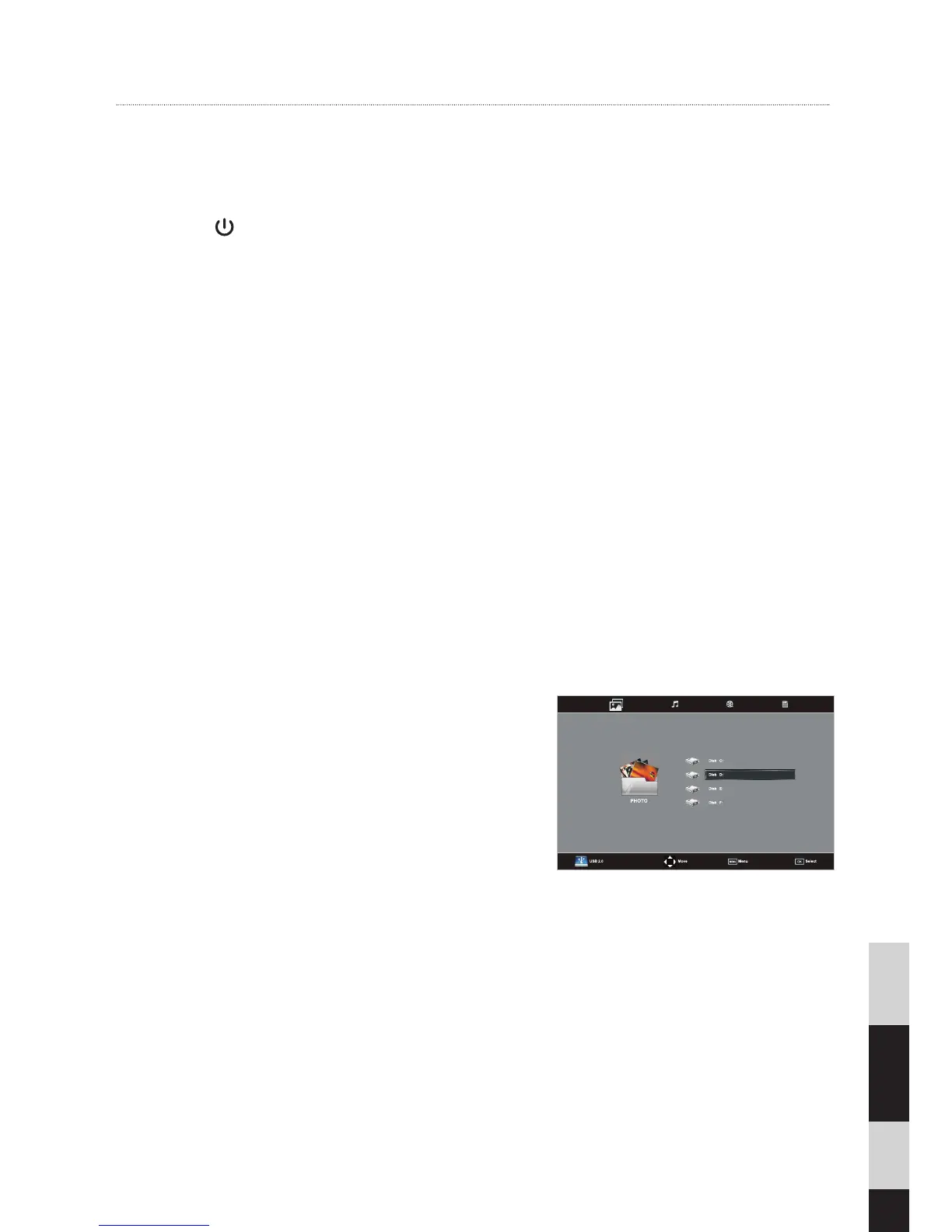 4. Tryck på -knappen för att starta TV:n och USB-lagringsenheten.
