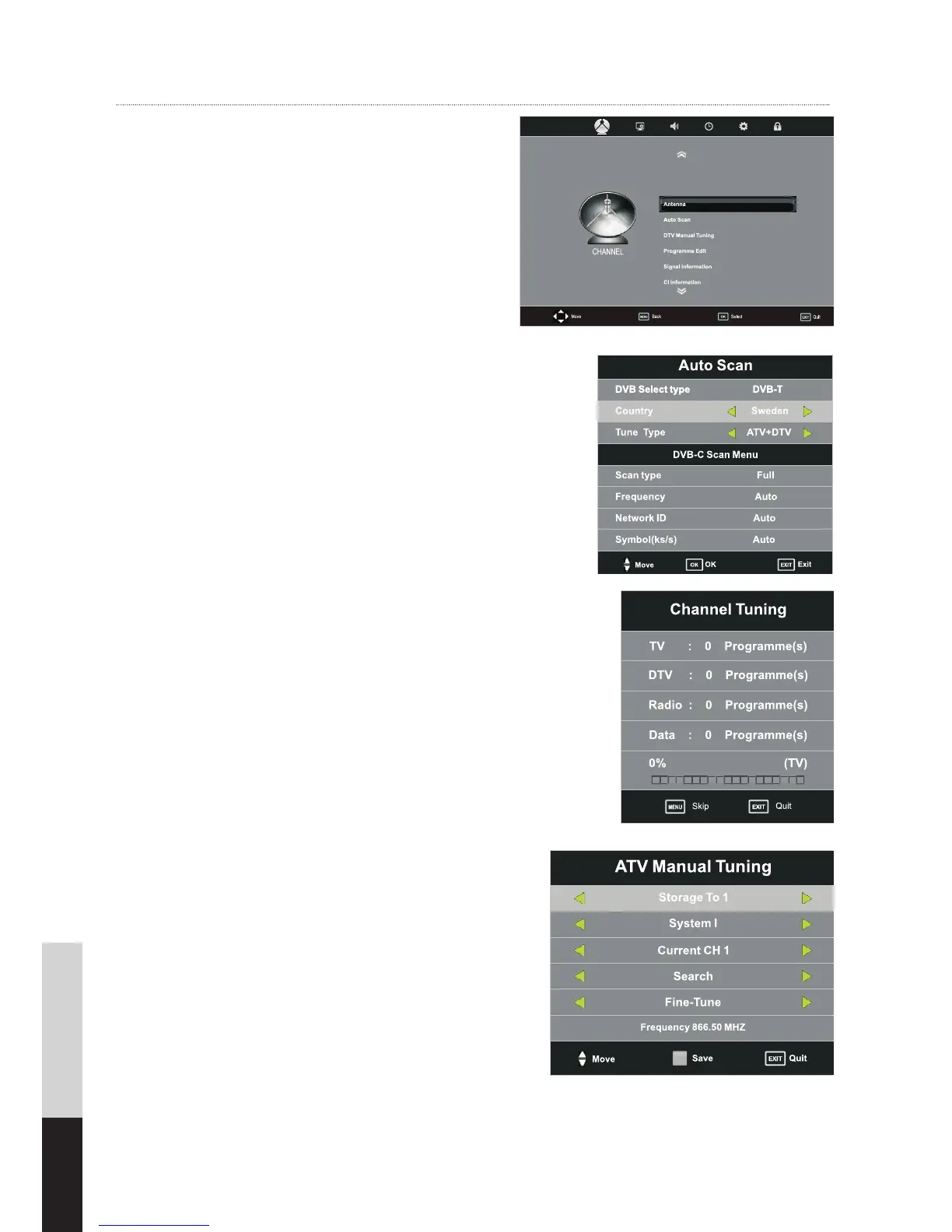 hvilket land du skal bruke TV-en i, samt velge type søk: ATV+DTV/