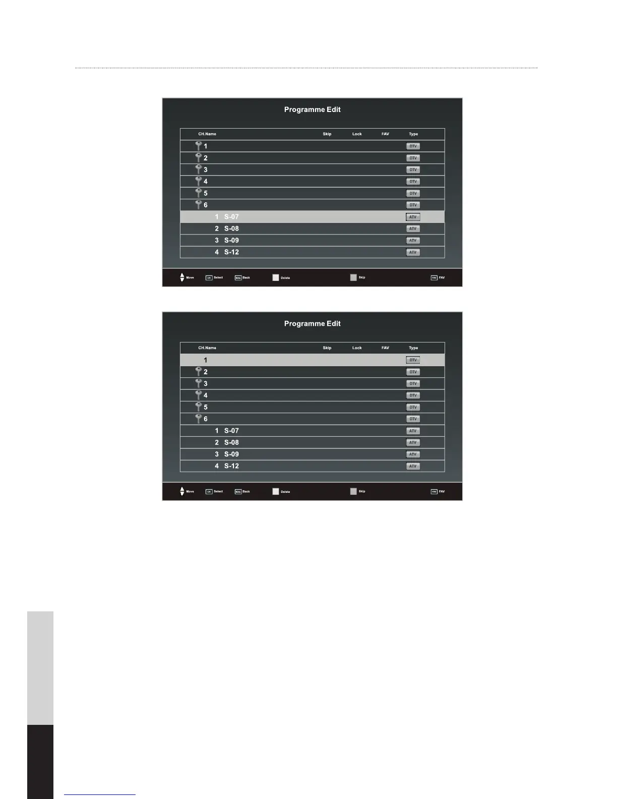Trykk på den RØDE knappen for å slette den valgte kanalen.